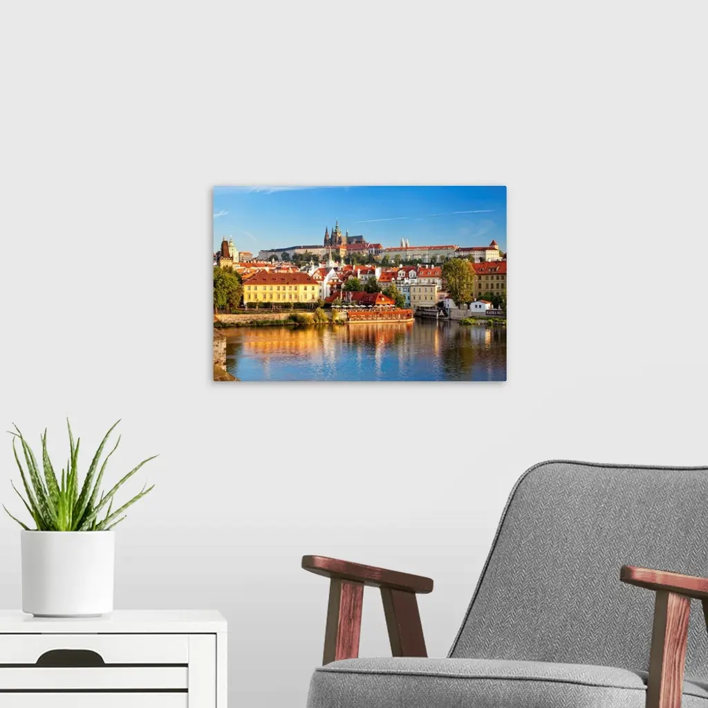 Czech Republic, Bohemia, Prague, Vltava River, View Hradcany Castle & St Vitus Cathedral wall art for home and office decor. Discover canvas art prints, photos, mural, big canvas art and framed wall art in GreatBigCanvas.com's varied collections.