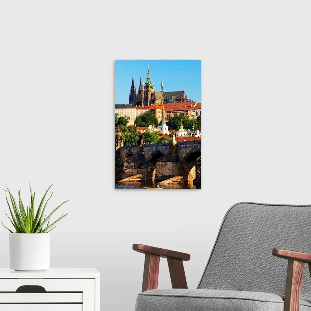 Czech Republic, Bohemia, Prague, Vltava River, View Hradcany Castle & St Vitus Cathedral wall art for home and office decor. Discover canvas art prints, photos, mural, big canvas art and framed wall art in GreatBigCanvas.com's varied collections.