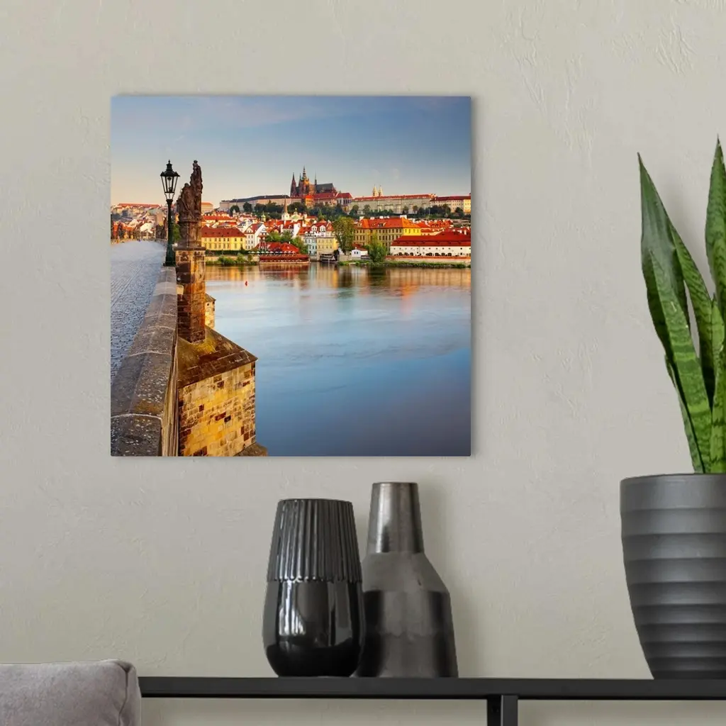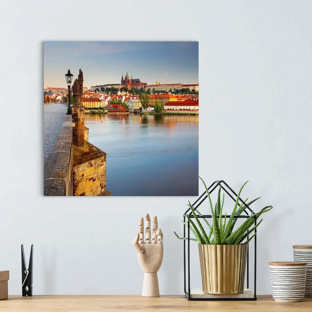 Czech Republic, Central Bohemia Region, Bohemia, Vltava, Prague, Charles Bridge, View towards Hradcany Castle and St Vitus Cathedral