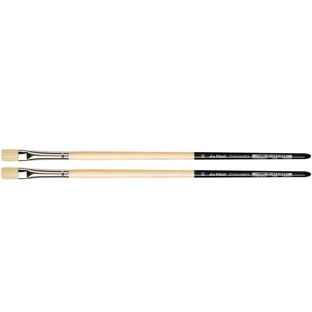 da Vinci CHUNEO Synthetic Hog Bristle, Oil, Flat, Series 7129, Size 10, Pack of 2 | da Vinci Chuneo Synthetic Hog Bristle Brushes have been carefully developed over years to offer a high-quality synthetic alternative to Chinese Chungking bristle. This line features strong, flexible, nearly-indestructible Synthetic Hog Bristle that is easy to clean and maintains its shape even after intensive use. The perfect tool for oils, acrylics and every kind of thicker colors as well as rough surfaces. Certified green manufacturing with sustainable wood handles handmade in Germany at our family owned factory since 1890. Vegan. Sold as a pack of 2.