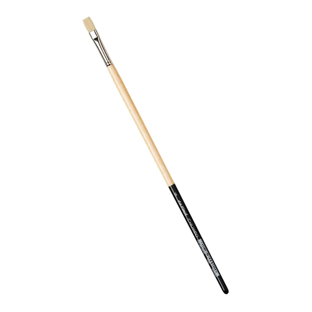 da Vinci CHUNEO Synthetic Hog Bristle, Oil, Flat, Series 7129, Size 6 | da Vinci Chuneo Synthetic Hog Bristle Brushes have been carefully developed over years to offer a high-quality synthetic alternative to Chinese style or inspired bristle. This line features strong, flexible, nearly-indestructible Synthetic Hog Bristle that is easy to clean and maintains its shape even after intensive use. The perfect tool for oils, acrylics and every kind of thicker colors as well as rough surfaces. Certified green manufacturing with sustainable wood handles handmade in Germany at our family owned factory since 1890. Vegan.