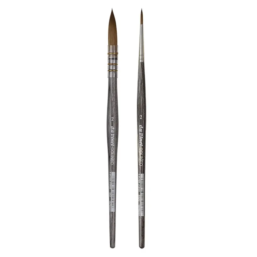 da Vinci COLINEO Synthetic Red Sable, Watercolor & Gouache, Quill Wash & Round 2 Brush Set | For many years, the brush industry has invested in researching all options to imitate the special properties of Siberian Kolinsky Red Sable hair with synthetic fibers. A most difficult task due to the particular structure of this precious natural material, which has become very rare and expensive over the last few years. With COLINEO we have succeeded in creating a mixture of synthetic fibers, very similar to its natural ideal. A carefully balanced mixture of different lengths of straight and wavy synthetic fibers with extra fine tips and tapered points, high elasticity and color absorption. Made in Germany. 100% Vegan. Handles are from sustainable forests in the Baltic states. Eco friendly manufacturing. This set includes: Series 442 Size 2 and Series 5522 Size 2.
