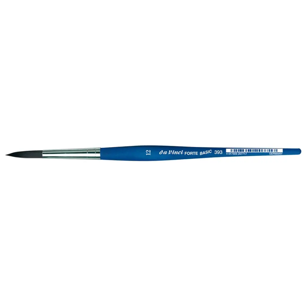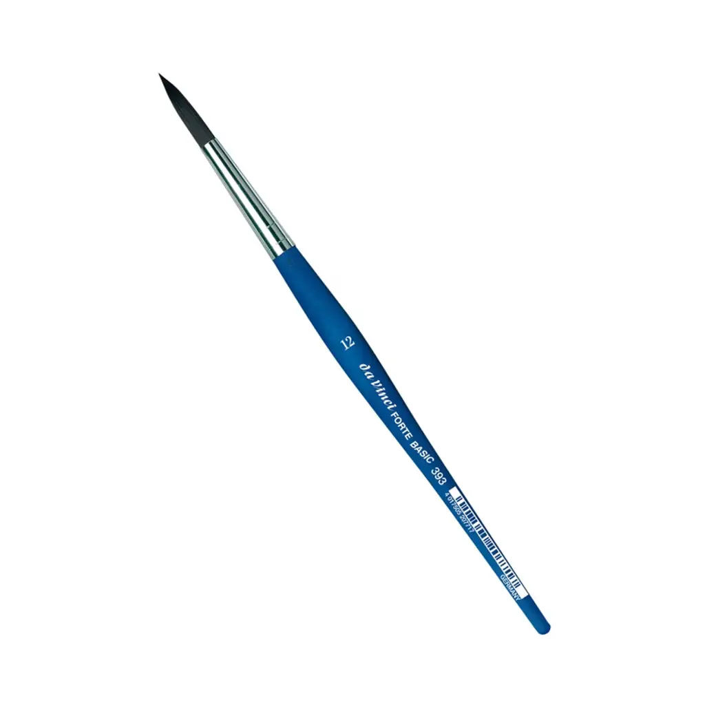da Vinci FORTE BASIC Student Brush, Synthetic, Acrylic, Round, Series 393, Size 12 | da Vinci Forte Basic is the brush line for all decorative craft techniques and colors. This brush is made from durable, red brown synthetic fibers, that were specifically developed for FORTE, which combine the best of bristle and natural hairbrushes. The extra durable fibers are ideal for any rough surface including wood, rough paper, card, textile, canvas, fired porcelain, ceramic and much more! Certified green manufacturing with sustainable wood handles handmade in Germany at our family-owned factory since 1890. 100% Vegan.