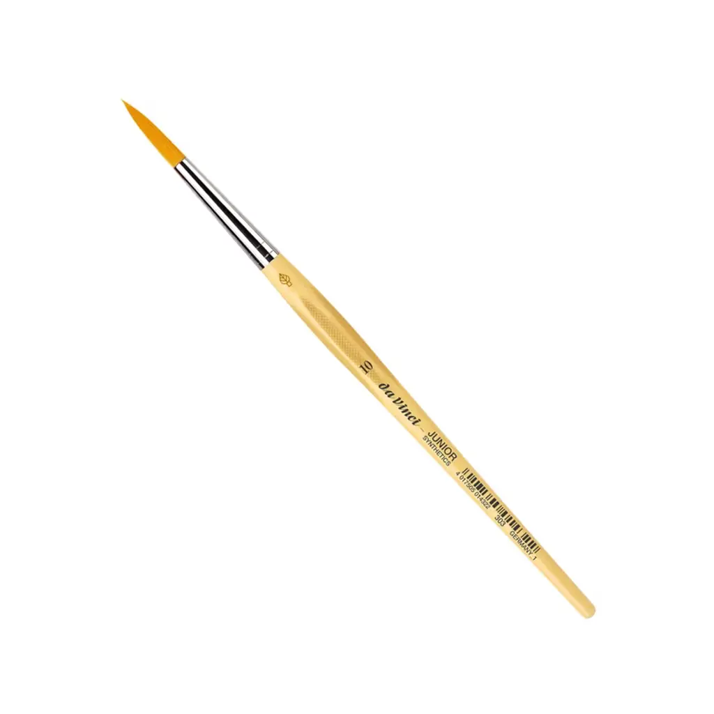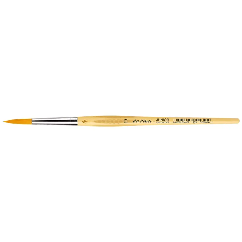 da Vinci JUNIOR Synthetics Student Brush, Synthetic, Tempera, Round, Series 303, Size 10 | da Vinci Junior art brushes are a well built, easy to use brush developed to improve the quality of brushes for beginners. They can be used with any type of paint and are easy to clean. The "hold it like a pencil" handle shape makes for a comfortable and familiar grip. The brush won't roll away if dropped. It has a reinforced brush head for heavy wear that will always hold its edge. Unlike most cheaper brushes, da Vinci junior features a "rust resistant" seamless polished ferrule. Made in Germany. Sustainable wood handles. Vegan. Eco-Friendly.