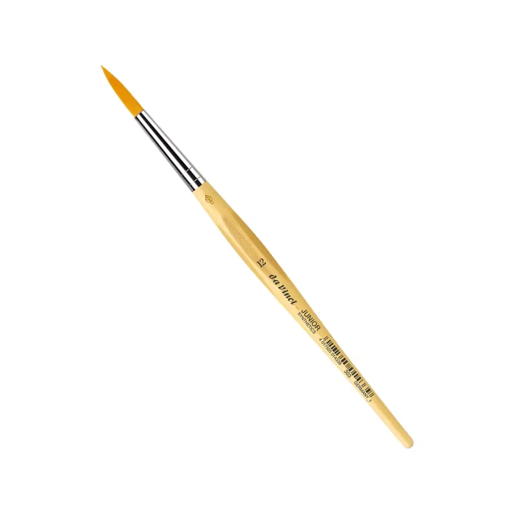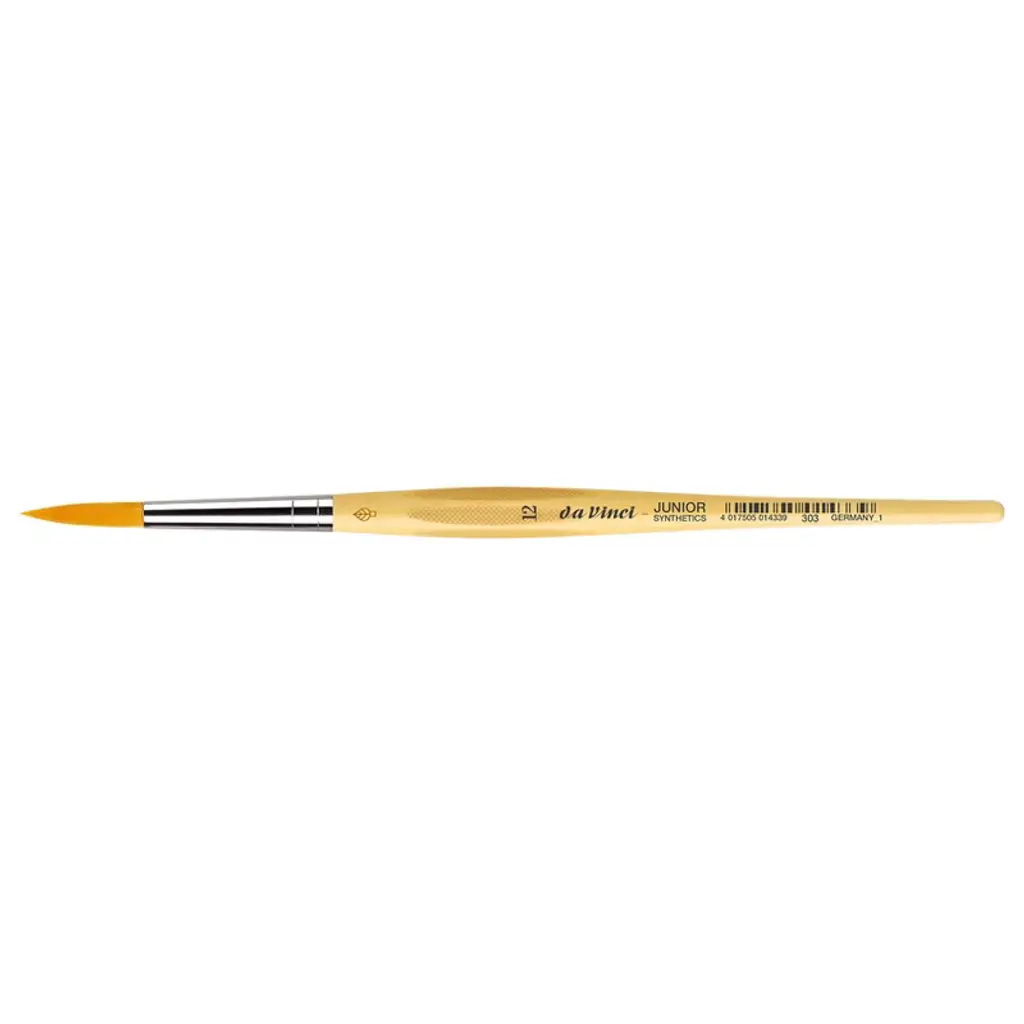 da Vinci JUNIOR Synthetics Student Brush, Synthetic, Tempera, Round, Series 303, Size 12 | da Vinci Junior art brushes are a well built, easy to use brush developed to improve the quality of brushes for beginners. They can be used with any type of paint and are easy to clean. The "hold it like a pencil" handle shape makes for a comfortable and familiar grip. The brush won't roll away if dropped. It has a reinforced brush head for heavy wear that will always hold its edge. Unlike most cheaper brushes, da Vinci junior features a "rust resistant" seamless polished ferrule. Made in Germany. Sustainable wood handles. Vegan. Eco-Friendly.