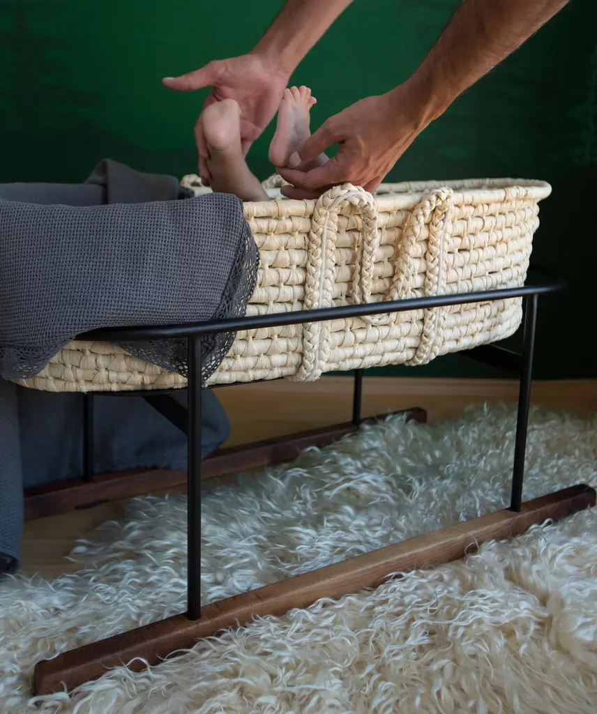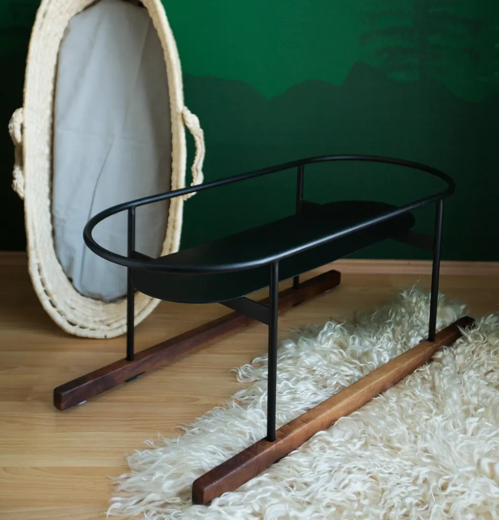 Dada Cradle by Rectangle StudioDimensions: W 90 x D 40 x H 50 cm Materials: Massive Walnut, Black Powder Paint Over Metal, Wicker BasketThe Dada cradle grows up the future generations with its modern structure.Dada's metal body, is shaped with electro-static paint. With its massive leg and two stealth wheels at each leg, offers comfortable mobility.Wipe with damp cloth.Rectangle Studio is a collective Design Brand created by Interior Architect and Designer Tarik KORKMAZ and Photographer Derya ATICI.Sculptural Furniture has a collective structure with its Interior Design, Professional Photography and Video works.Rectangle Studio is a design studio that works on different disciplines and materials and produces.While Rectangle Studio shapes its works in its own hands, it produces its works in cooperation with international and senior, industrial or artisanal partners.In interior design works; prioritizes the sense of sensitivity, dedication and excellence.In the photo works; In the relationships he established with his partners; is to produce works that are respected in the art of photography with an honest, creative and humanistic perspective.