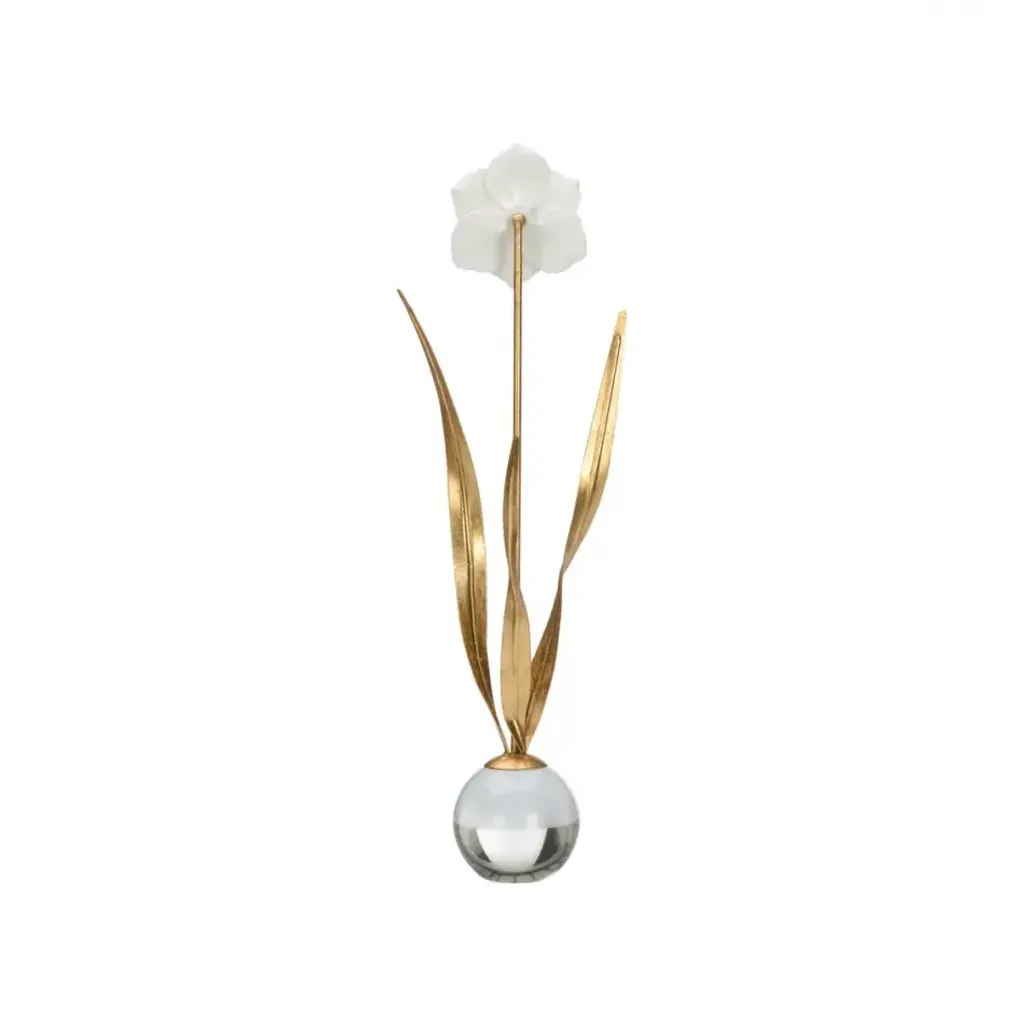 Giving the gift of flowers can last longer with the beauty of the Daffodil casted in gold and standing top a crystal base. Elegant way to show blooms all year.