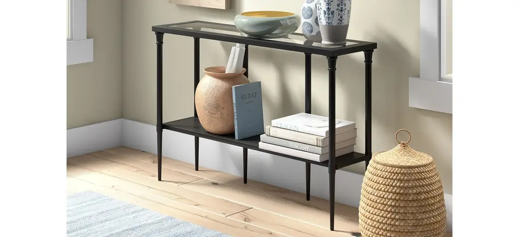This console table is the perfect combination of vintage flair with modern farmhouse style. The legs are designed with a tapered top, inspired by vintage and antique design while the clean silhouette of the table top captures modern simplicity. Use it in the living room as a sofa table or in your entryway to hold keys, magazines and other gadgets.