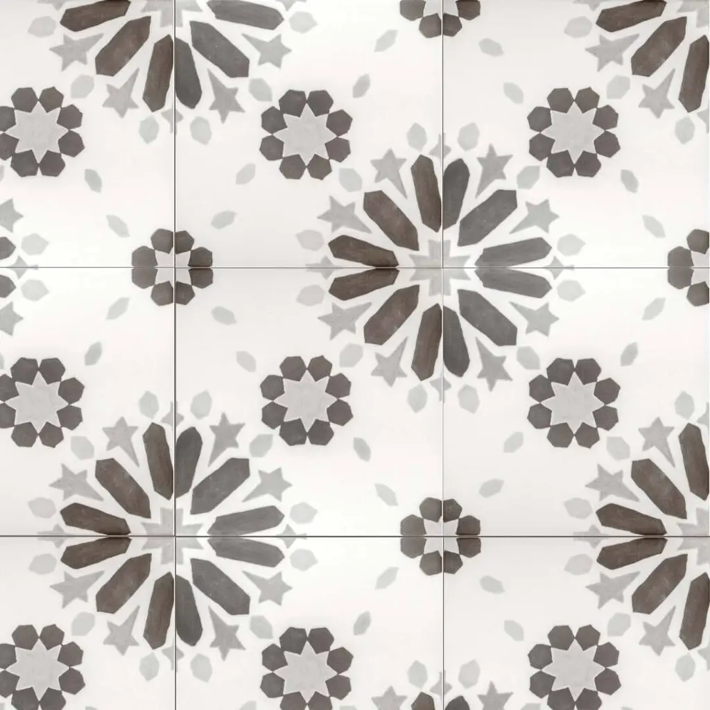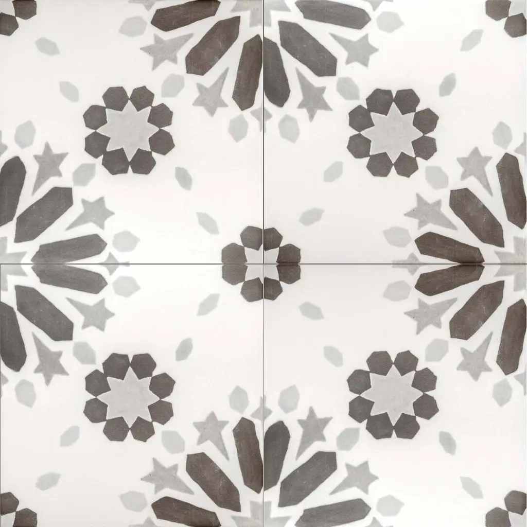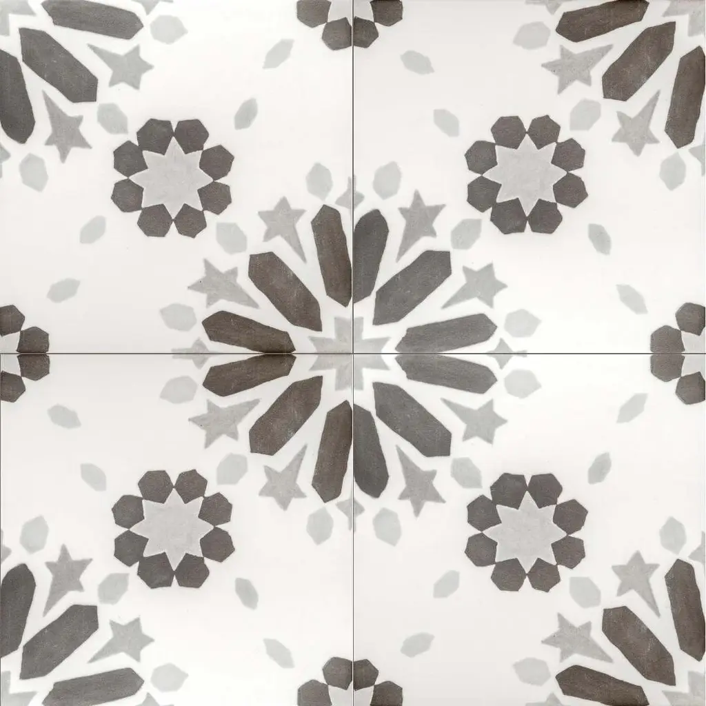 The Dhalia collection unfolds like a blooming flower, with intricate patterns that bring a sense of movement and artistry to any space. Made in Spain from durable porcelain with a sleek matte finish, these 6x6 tiles are designed for both indoor and outdoor use. The collection comes in four versatile shades—Beige, Blue, Grey, and Noir—each enhancing the delicate yet bold floral-inspired design. Whether creating a striking feature wall or adding character to a patio, Dhalia offers a balance of refinement and natural beauty in every tile. FEATURES: A case of this product includes 25 pieces and covers 6.03 square feet Porcelain, singular, geometric, encaustic, floral, patterned, matte, pressed, straight edge floor and wall tile Impervious and waterproof; Withstands sun and rain Matte finish with a shade 1 rating/ variation (V1 uniform appearance) Made in Spain Constructed from durable, long-lasting porcelain Features a sleek matte finish for a contemporary look Available in four stylish colors: Beige, Blue, Grey, and Noir Modern encaustic patterned design Convenient 6"x6" size for versatile installation options Perfect for both interior and exterior spaces This product has a PEI rating of 3 (endurance and hardness indicator) and therefore is suited for residential countertops, walls, and medium-traffic floors Ideal for backsplashes, bathrooms, showers, kitchens, outdoors, pools, floors, walls Approved for residential and commercial installations Easy to install 6 inches x 6 inches decorative geometric, floral pattern porcelain floor and wall tile DIMENSIONS: Individual tile size: 6 inches L x 6 inches W Surface area per carton: 6.03 square feet Sample tile size: Full size 6 inches L x 6 inches W