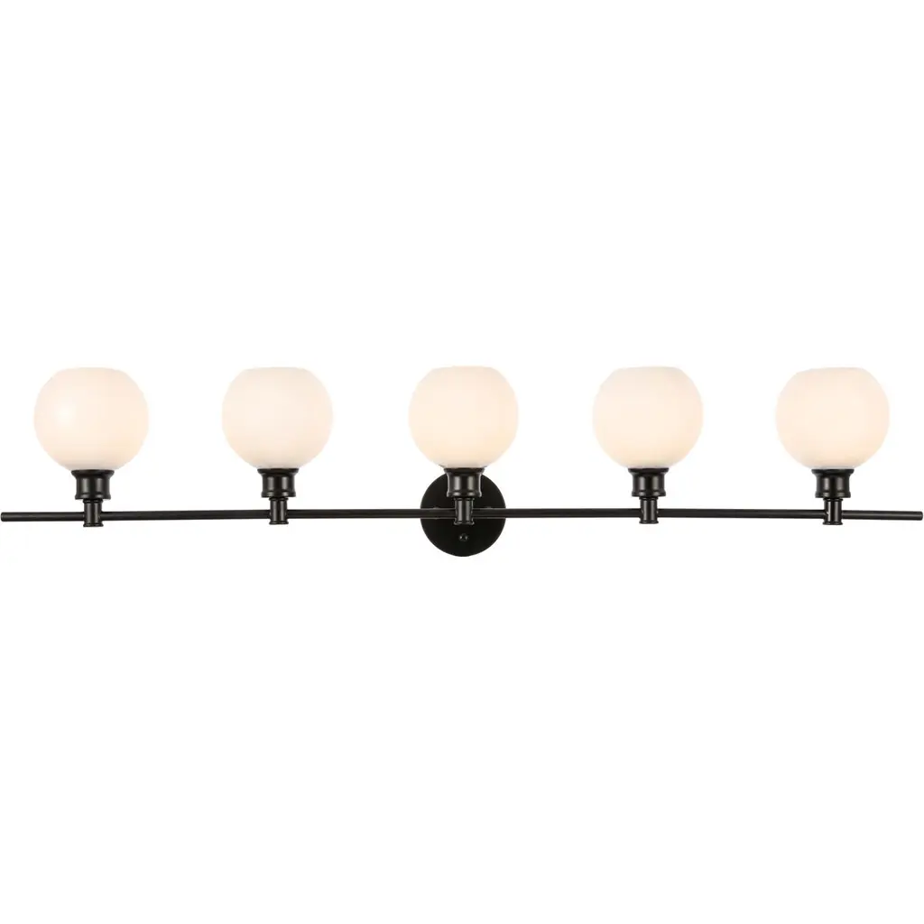 Dainolite Transitional Vivaldi Vanity in Painted Black Metal for the Wall with 5 bulb, G9 socket base 40 Watts max Dimmable and UL Approved for Damp Location with a 1 Year warranty. Great for Bathroom, Powder Room, Spa rooms and Commercial use. Features include , Suited for Bathrooms and Powder Rooms, LED Compatible Easy Assembly and Installation,