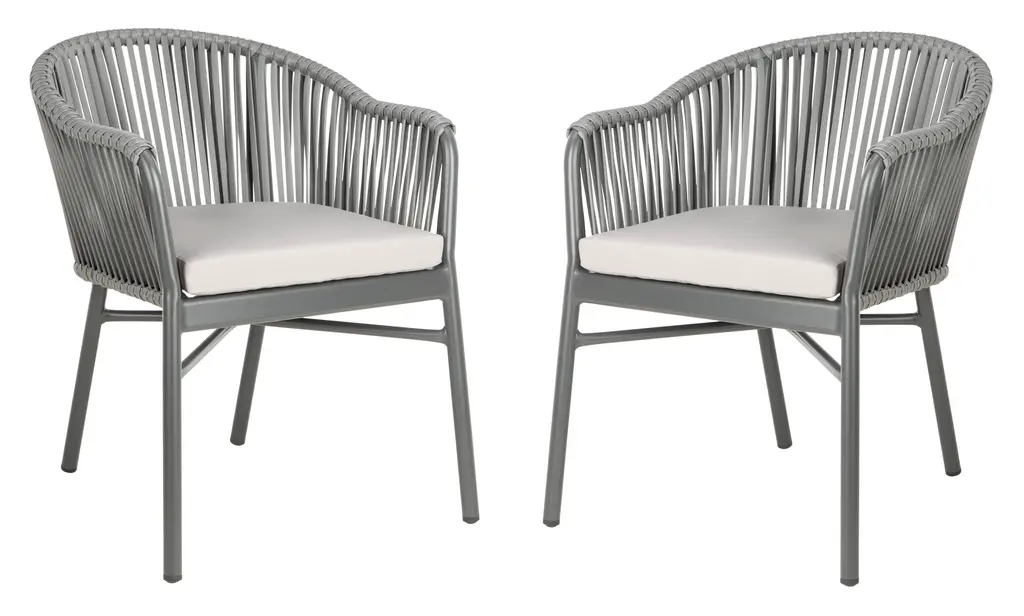 Daisy Stackable Rope Chair In Grey & Grey Cushion - A Pair