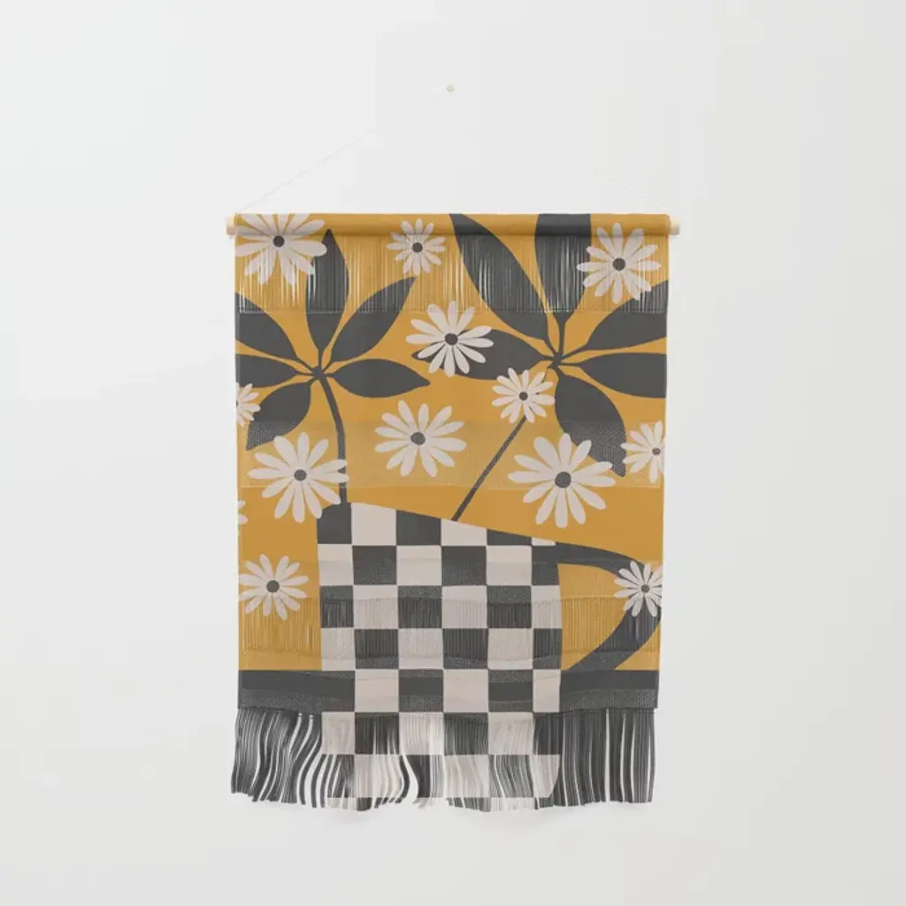 Daisy Time Retro Floral Pattern In Mustard And White Wall Hanging