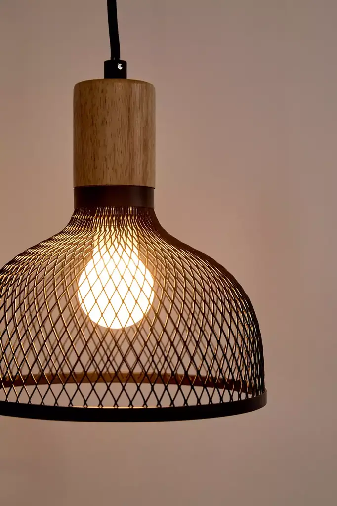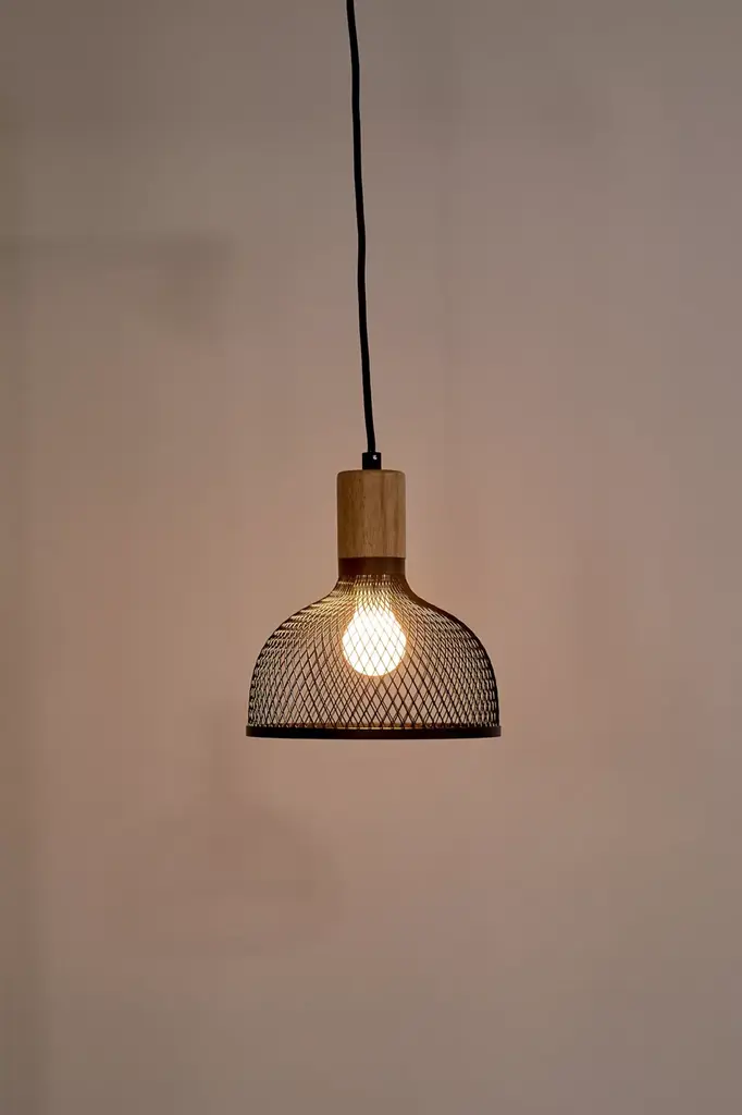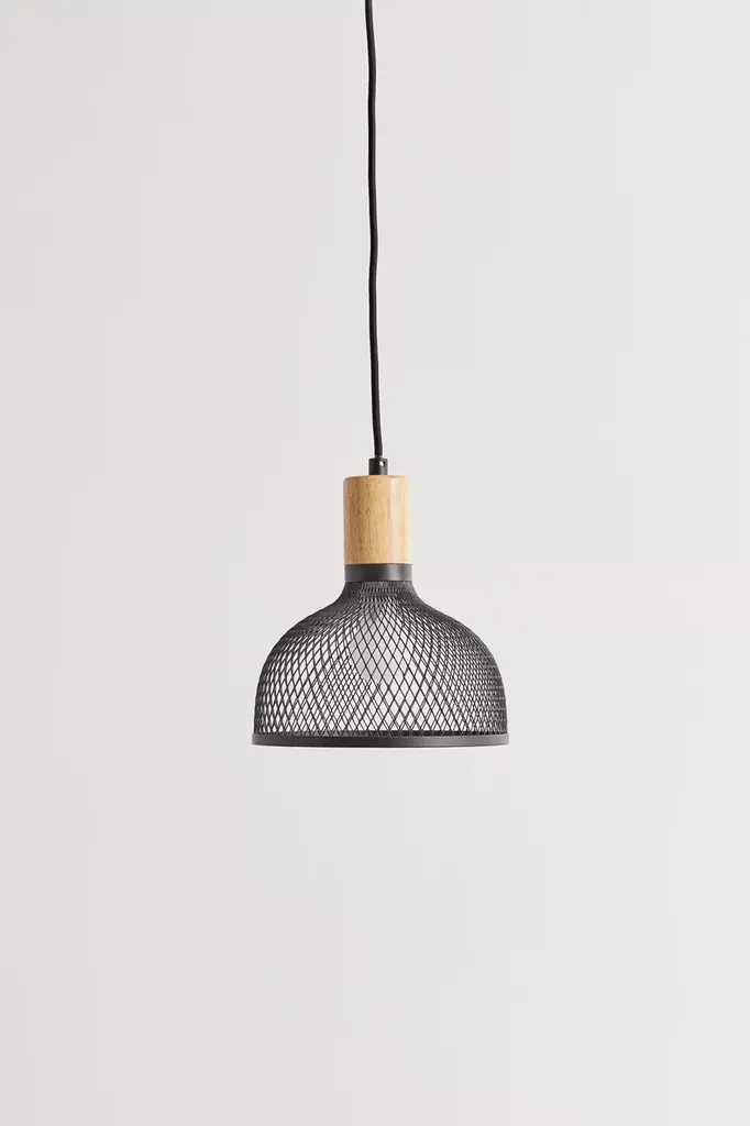 Metal caged pendant light that brings an industrial-modern feel to your space. With a wire shade crisscrossing along the curved silhouette to form sharp angles patterning across, topped with a fabric-covered cord. Hardwired. **Features** \- Pendant light \- Hardwired - requires professional installation \- Requires E26 medium base 60W bulb - included **Content + Care** \- Metal, electronics \- Wipe clean \- Imported \- Made in compliance with US electrical standards. To use this item outside of the US, pair with an outlet adapter and voltage converter made specifically for use in your location. **Size** \- Dimensions: 10.75”dia x 12”h \- Cap dimensions: 4”dia x 1”h \- Wattage: 60W \- Cord length: 72” \- Weight: 1.5 lbs \- Shipping package dimensions: 13.58”l x 13.58”w x 10.43”h \- Shipping package weight: 3 lbs