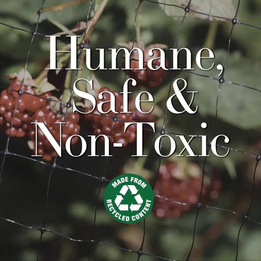 Whether you are a professional gardener or simply enjoy growing your own organic fruits and veggies, this bird net is an excellent choice for safeguarding your garden bed, plants, berries, vines, crops or fruit trees. This product is constructed of polypropylene mesh with UV inhibitors, a unique material that is weatherproof, not easy to tear and contains no chemicals or toxins, so it is entirely harmless to birds, rabbits, squirrels, and other small animals. Features a user-friendly and flexible design that is easy to install without requiring expensive professional tools. Made from recycled content.