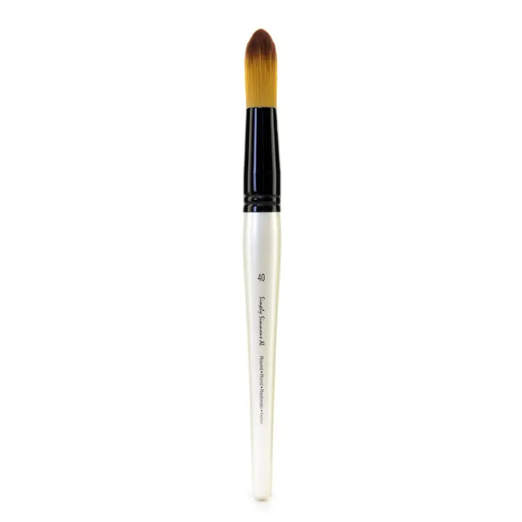 The Daler-Rowney Simply Simmons XL Brushes expand the popular Simply Simmons range into larger sizes, offering a comprehensive selection for artists working on big canvases or broad applications. This collection features 24 brushes across five sizes—30, 40, and 50 in XL, and 60 and 70 in XXL—catering to a variety of artistic needs. The brushes are available in three distinct hair types: Soft Synthetic Gold, ideal for fluid color, water-based paints, large washes, and smooth surfaces; Stiff Synthetic Burgundy, designed for heavy body color, impasto techniques, and rough surfaces; and Natural Bristle, which excels with oil paints but is also versatile enough for acrylics, gesso, and varnish on any surface. The range also includes three head types—flats and filberts up to 3 inches wide, and rounds up to 1 inch in diameter—ensuring artists have the right tool for every broad stroke or detailed application.