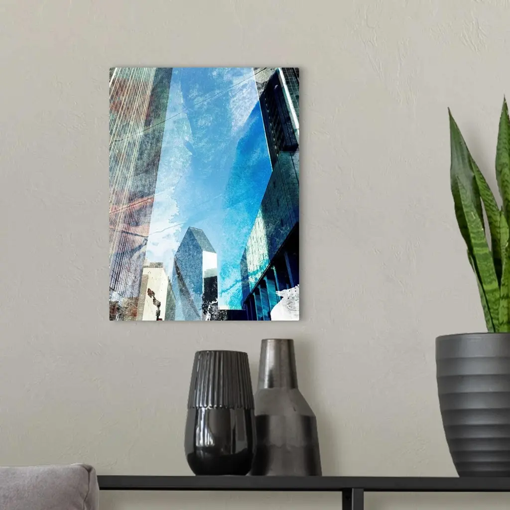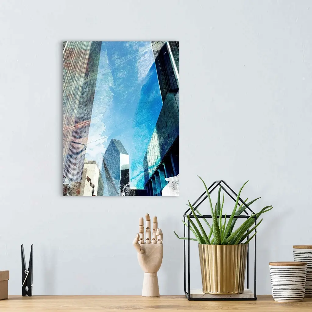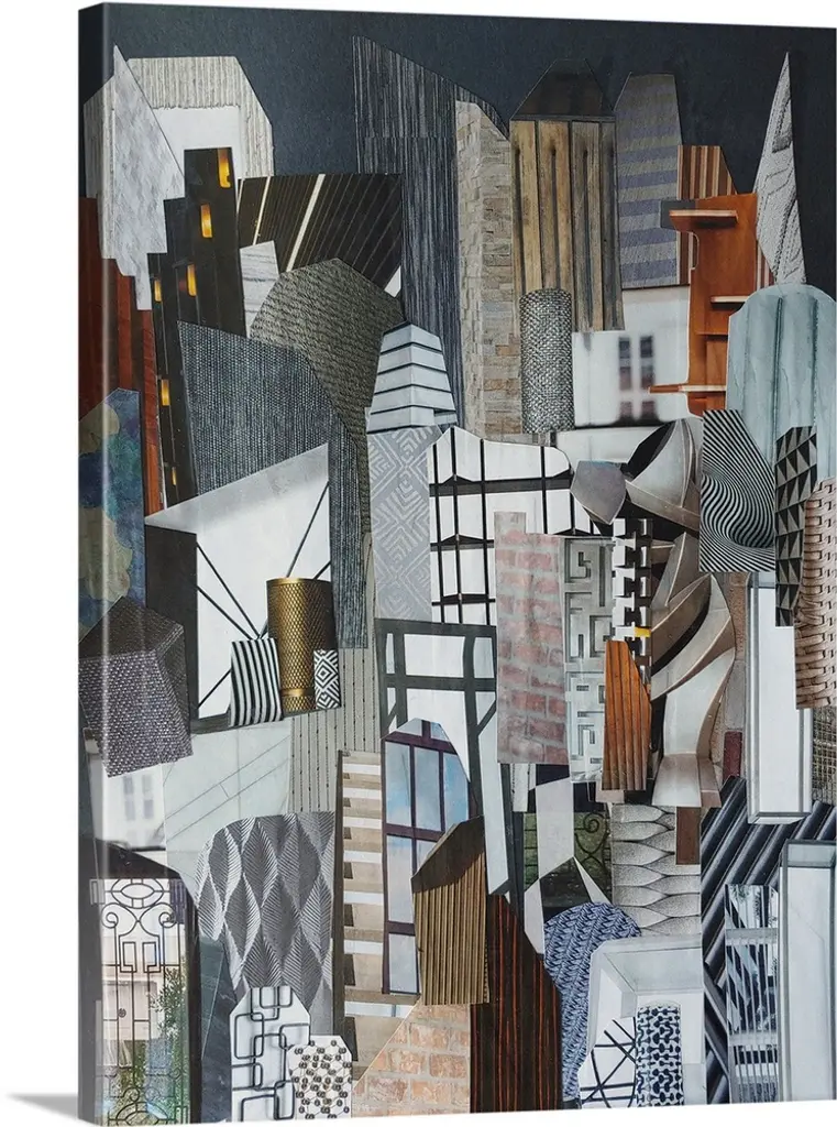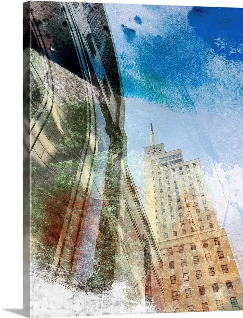 Abstract photograph of architecture in downtown Dallas, TX with a rough textured overlay.
