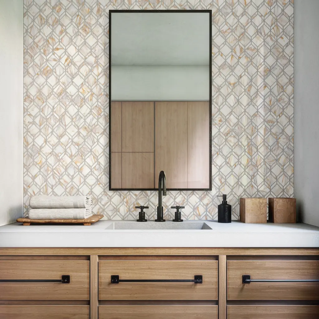 Gamma is the richness of natural stone in an array of unexpected shapes and sizes. Drastic veining on top of exotic colors creates a magnetic pull to your space. Design a floor-to-ceiling statement with the nine mosaic options. Features: Beautiful natural stone in unique shapes and sizes Exotic colors with drastic veining Nine mosaic offerings for endless design possibilities Note: Actual product color may vary due to monitor settings and room lighting