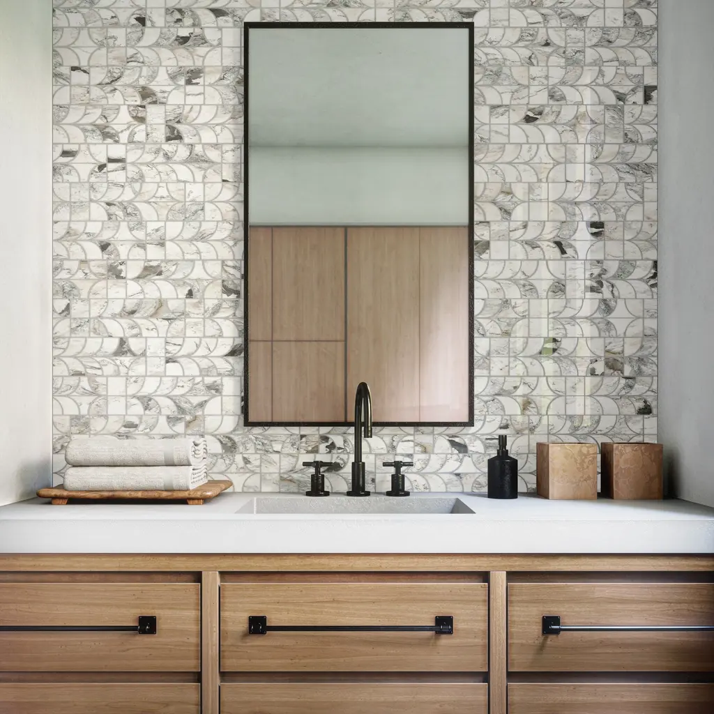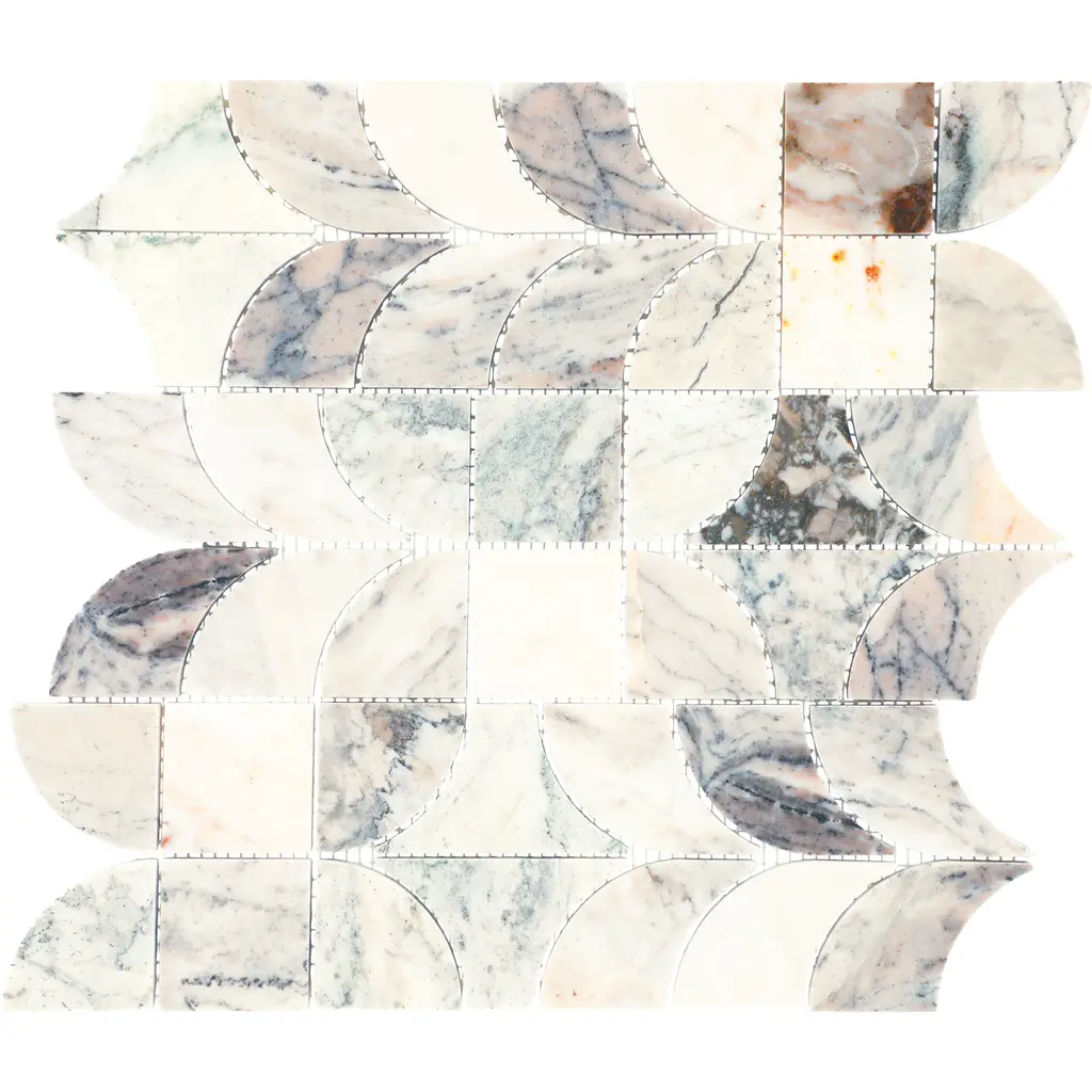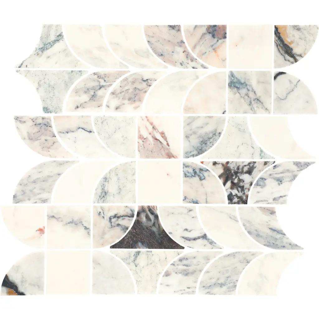 Gamma is the richness of natural stone in an array of unexpected shapes and sizes. Drastic veining on top of exotic colors creates a magnetic pull to your space. Design a floor-to-ceiling statement with the nine mosaic options. Features: Beautiful natural stone in unique shapes and sizes Exotic colors with drastic veining Nine mosaic offerings for endless design possibilities Note: Actual product color may vary due to monitor settings and room lighting