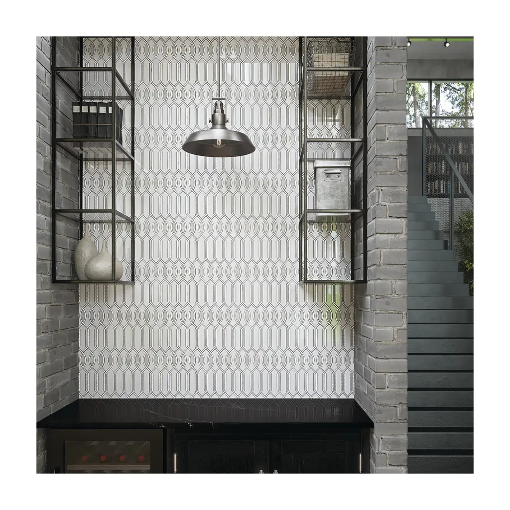 Create show stopping designs with Lavaliere. This sleek and sophisticated collection offers an unmatched level of luxury. Intricate natural stone mosaic offerings serve as unique, one-of-a-kind accents. Lavaliere will entice you to fall in love with your space every day. Features: Natural Stone integrated with antique mirror and metal elements Intricate mosaic offerings serve as unique, one-of-a-kind accents Geometric visuals with soft lines and dramatic features Unique shapes with architectural movement It is recommended you purchase a minimum of 10% overage to account for design cuts and patterns Note: Actual product color may vary due to monitor settings and room lighting