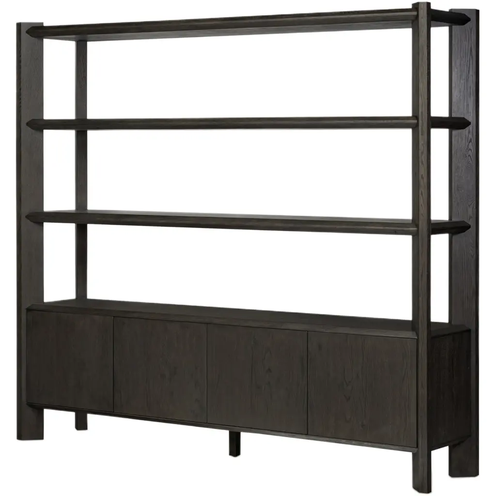 Weaving light and dark, chic and timeless, solid and ethereal, the Danan wall unit's expertly balanced transitional flair is an object lesson in "less is more". Ten shelves stand five apiece in two piers, their open sides and backs allowing light to dance across subtly curved oak veneers in a light brown finish. Between these two bookshelves, the 84" console features six cabinet doors in subtly curved oak veneers. Each pair of doors open onto three adjustable shelves, offering an enormous amount of storage space for electronics, books and other entertainment essentials.
