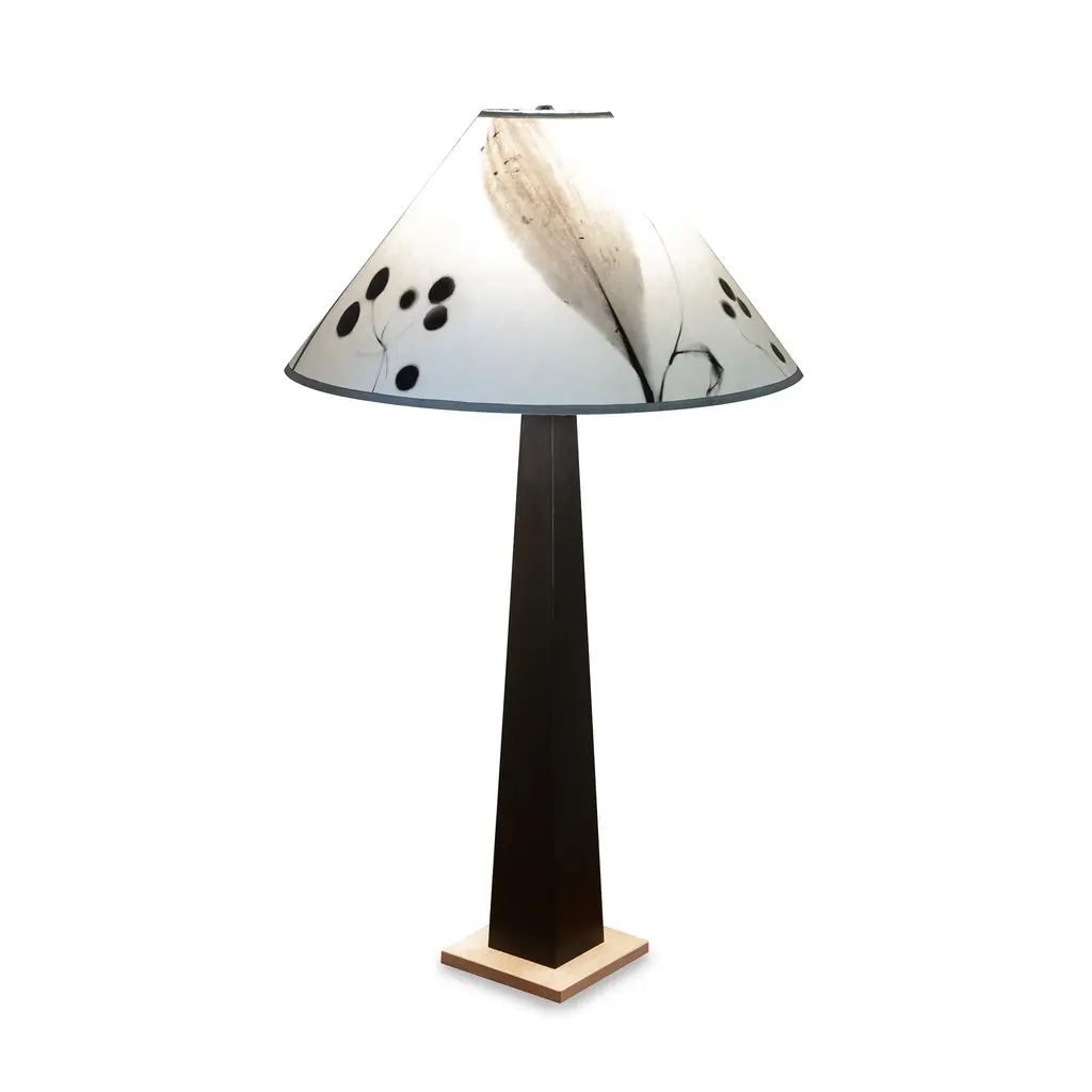 This product is available for in-store pick up only. It is currently on display at our Southern Vermont showroom. It can be made-to-order and shipped by visiting the Dance of Life Table Lamp. Celebrate the beauty of nature with the simple elegance of our Dance of Life Table Lamp. Handcrafted by local artisans right here in Vermont, this one-of-a-kind lighting fixture features a solid wood base paired with a cotton lampshade. The combination of the natural wood characteristics and the photographic botanical images that enliven the lampshade immerse you in a jubilee of organic forms. Revel in the soft illumination that this carefully crafted table lamp brings to your home. One (1) table lamp available in black base with natural maple accents Please note: Showroom items are subject to wear and tear and may show signs of use as a display model. Additional details, images and viewing options are available upon request.