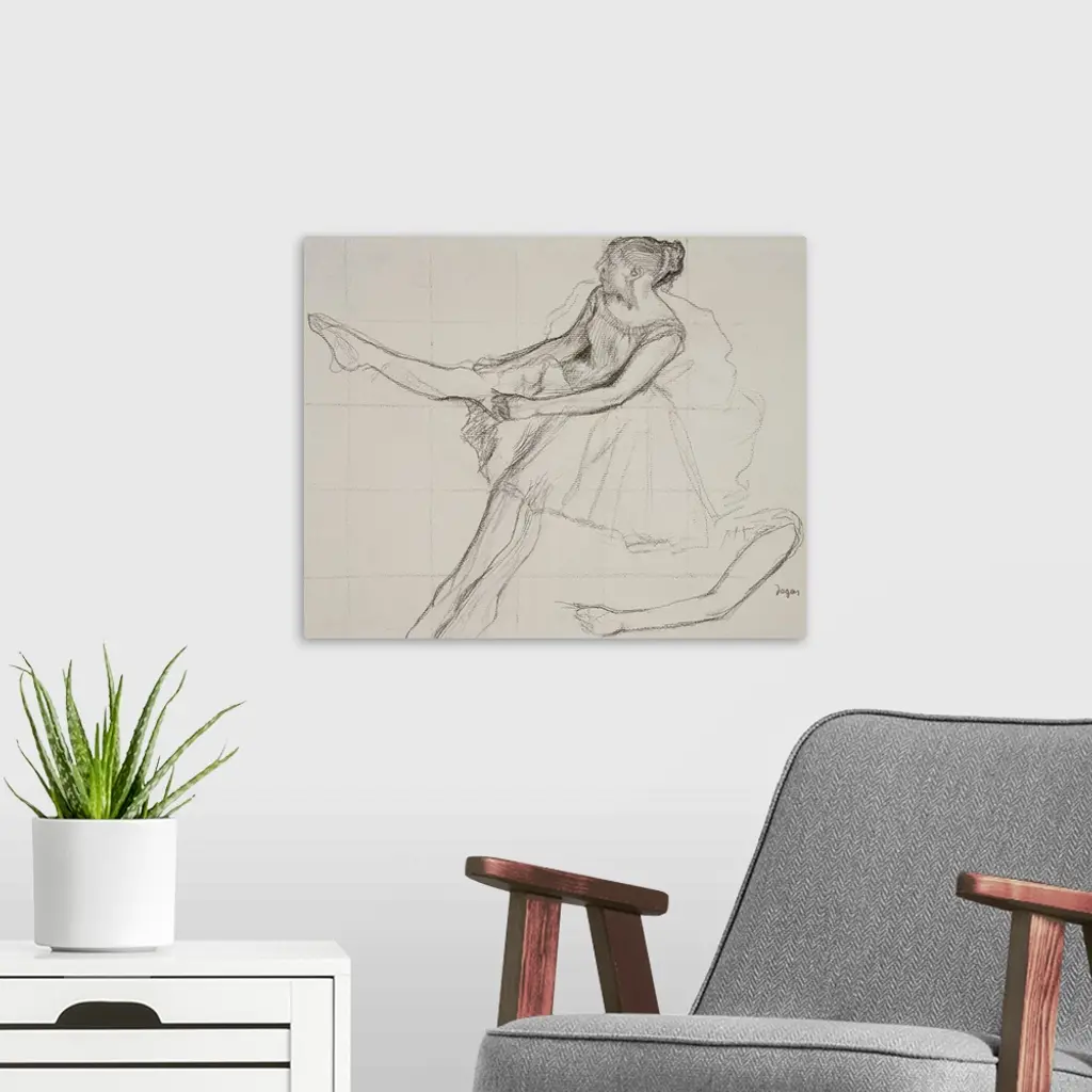 Dancer adjusting her tights, c.1880 (pencil and charcoal on paper) by Degas, Edgar (1834-1917)