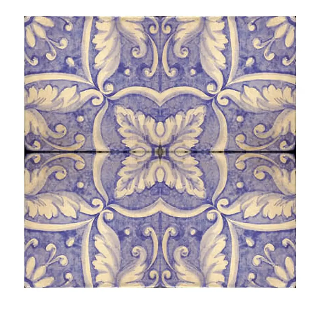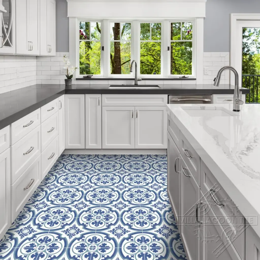 Danielle Cement Tile in Blue/White is hand-crafted by master artisans using a process over 150 years old. Low-energy non-fired decorative tiles are produced from cement, mineral pigments, ground marble dust, and sand, then pressed and cured to produce one of the most beautiful surfaces on the market. Note: Cement tiles need to be sealed once or twice, before grouting and general usage.