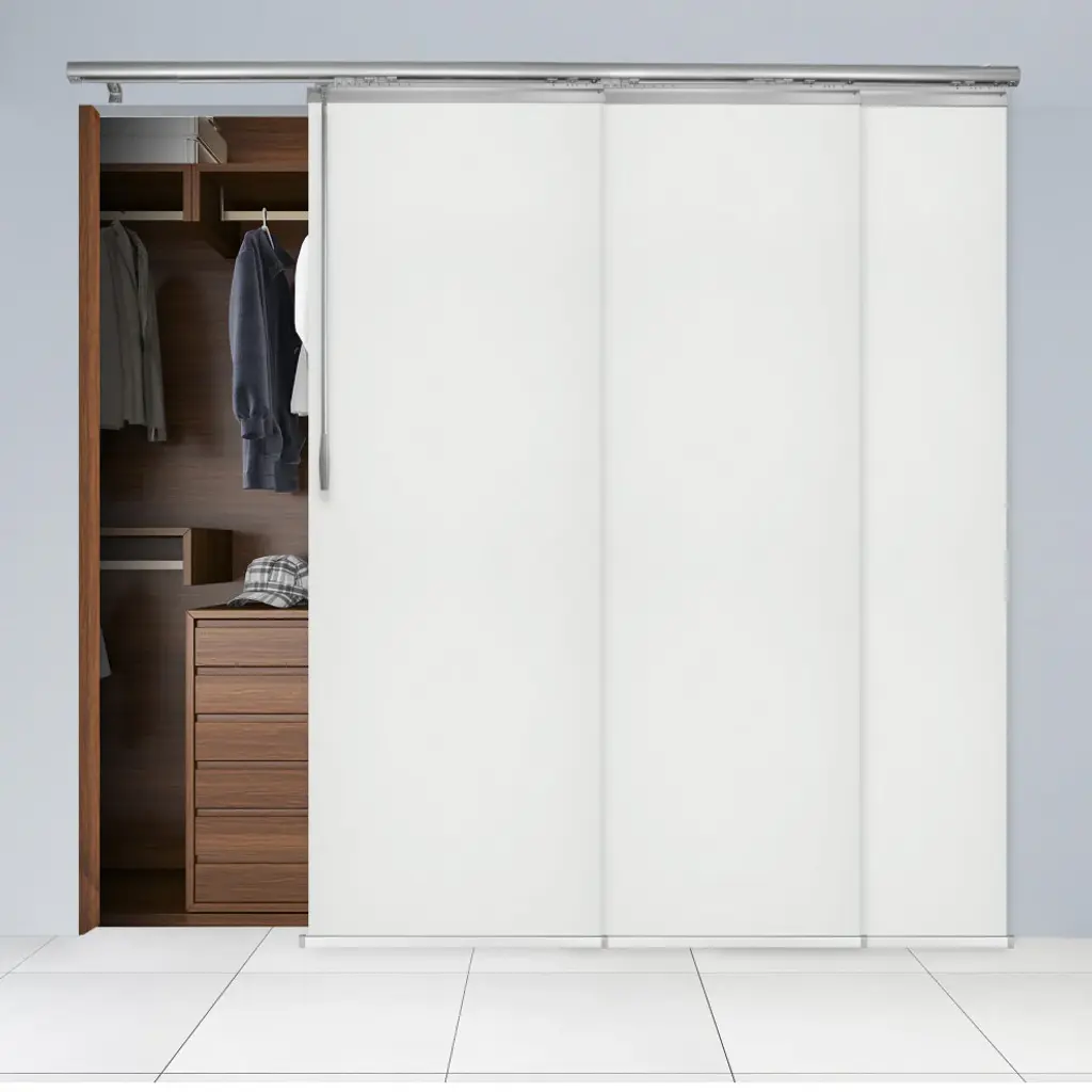 Central Design Products is pleased to introduce a new innovative panel track that offers easy 2-way installation, adding an alluring style and refined touch to your home decor. The single rail design of the track is sleek, compact, and reduces the overall footprint and weight of the installation, eliminating bulky, intrusive window treatments. Adjusting the panel height is a breeze � simply trim the panel, re-attach the liner, and install the panel weight. Detailed instructions are included.The panel track also features a patented slider design, made with aluminum and fitted with bearings that allow for durable and smooth operation. The sliders are stacked closer together than conventional panel tracks, reducing light bleed coming from the gaps between panels. This track has endless uses from dividing rooms, garages, offices, and closets to decorating windows and patios. Available in larger sizes including 8, 10, and 12 panels. Extends from 36-66� wide. Each panel measures 23.5" wide and 91.5" tall, with a total installation height of 94" (includes the 2.5" rail track). The track can be wall or ceiling mounted. The panels can stack on the left or the right. The clearance from the wall is extendable from 1.25� to 3.25� and projection from the wall is extendable from 3� to 4.25�. Danilo panel is made from 70% Polyester 30% Acrylic, with a blackout shade.