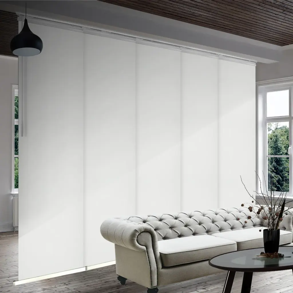 Central Design Products is pleased to introduce a new innovative panel track that offers easy 2-way installation, adding an alluring style and refined touch to your home decor. The single rail design of the track is sleek, compact, and reduces the overall footprint and weight of the installation, eliminating bulky, intrusive window treatments. Adjusting the panel height is a breeze � simply trim the panel, re-attach the liner, and install the panel weight. Detailed instructions are included.The panel track also features a patented slider design, made with aluminum and fitted with bearings that allow for durable and smooth operation. The sliders are stacked closer together than conventional panel tracks, reducing light bleed coming from the gaps between panels. This track has endless uses from dividing rooms, garages, offices, and closets to decorating windows and patios. Available in larger sizes including 8, 10, and 12 panels. Extends from 58-110� wide. Each panel measures 23.5" wide and 116" tall, with a total installation height of 118.5" (includes the 2.5" rail track). The track can be wall or ceiling mounted. The panels can stack on the left or the right. The clearance from the wall is extendable from 1.25� to 3.25� and projection from the wall is extendable from 3� to 4.25�. Danilo panel is made from 70% Polyester 30% Acrylic, with a blackout shade.