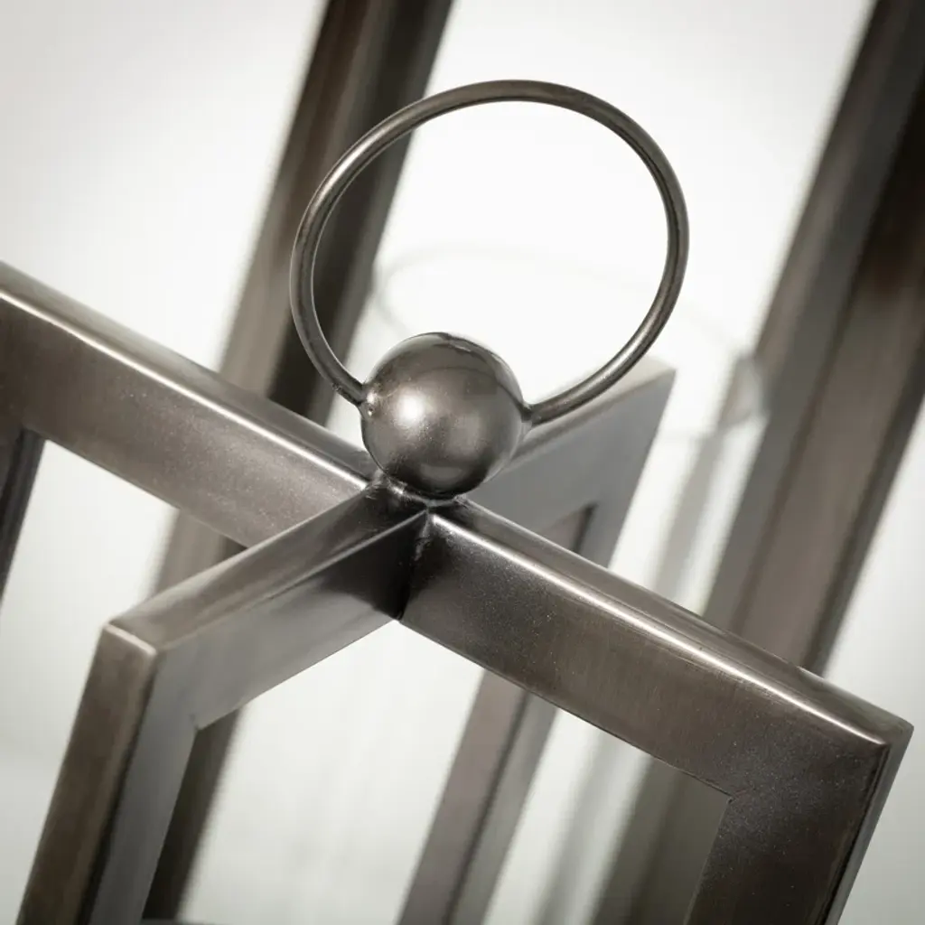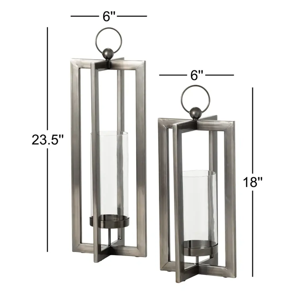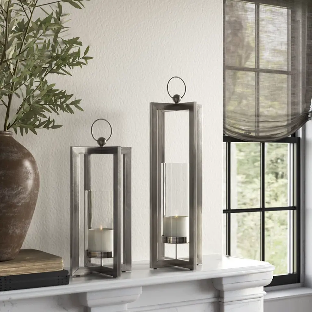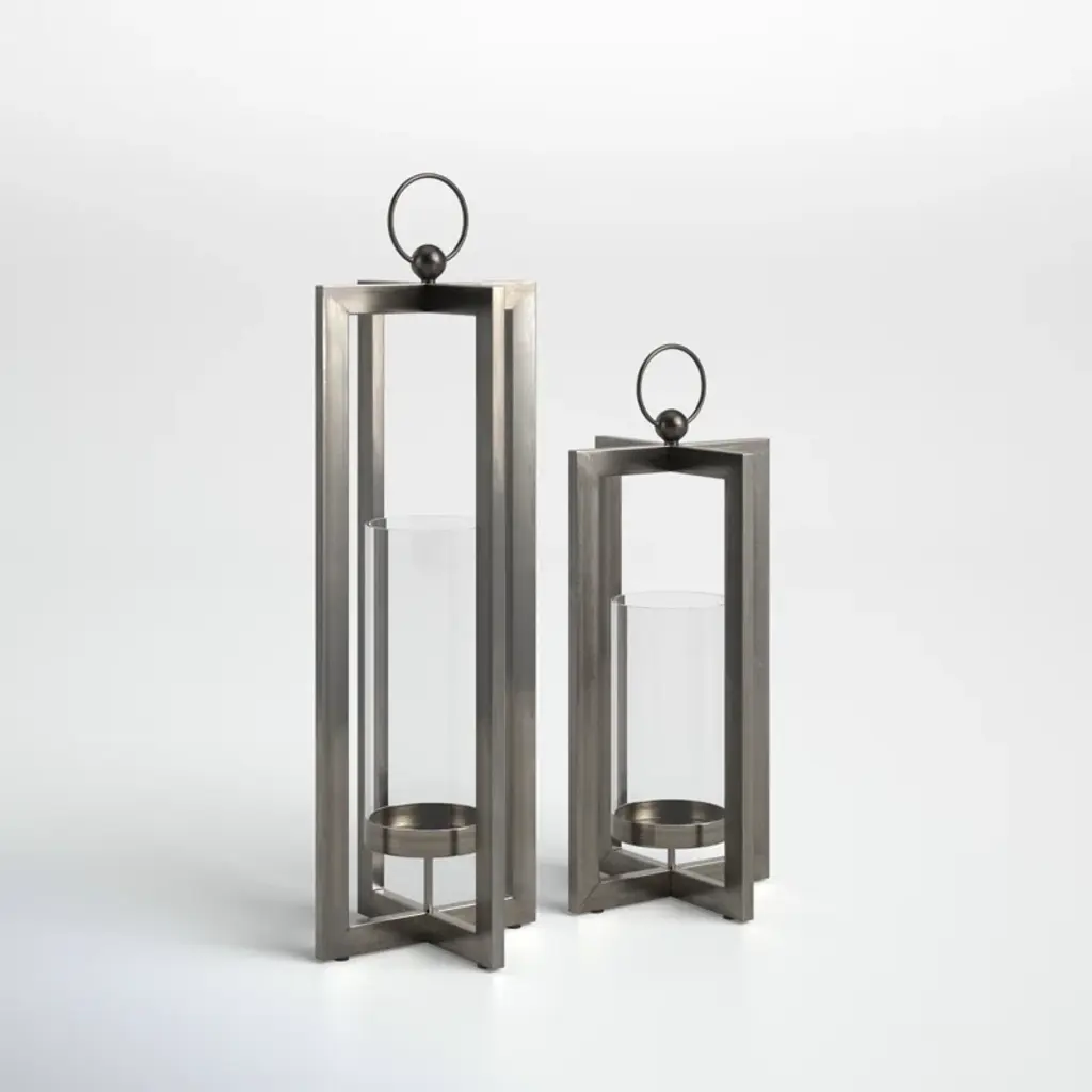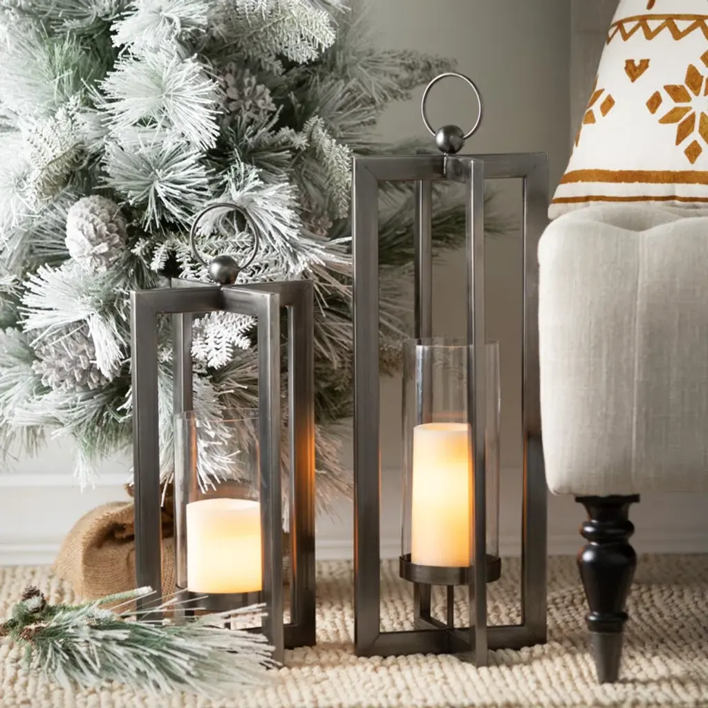 Showcase the square, graphic shape of our hurricane lanterns to make an impressive statement in your holiday decorating. the sleek, bold frames in this set of two lanterns hold clear hurricane glass. scaled for larger spaces, these lanterns would make a stunning addition to your Christmas decor.