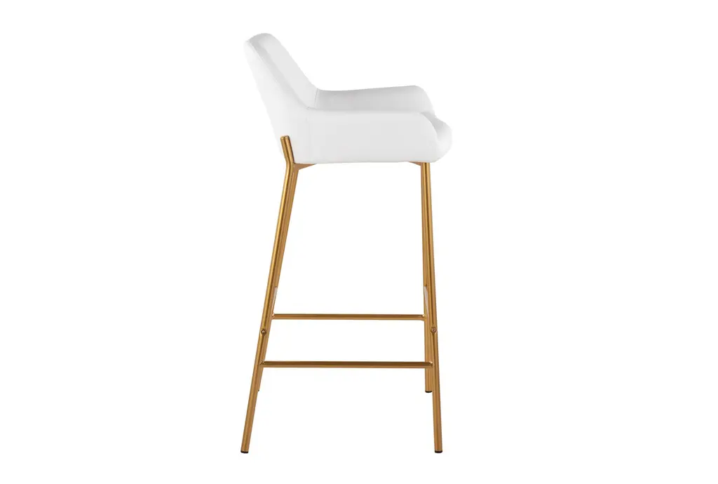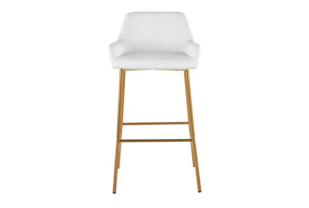 Introducing the Danny Gold + White Metal Faux Leather 30" Barstool Set Of 2, an impeccable addition to your dining room or kitchen. These barstools feature a modern design that seamlessly integrates with your space, providing both style and comfort. The combination of gold metal and white faux leather creates a striking visual contrast that is sure to impress.