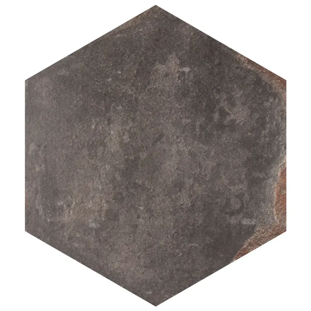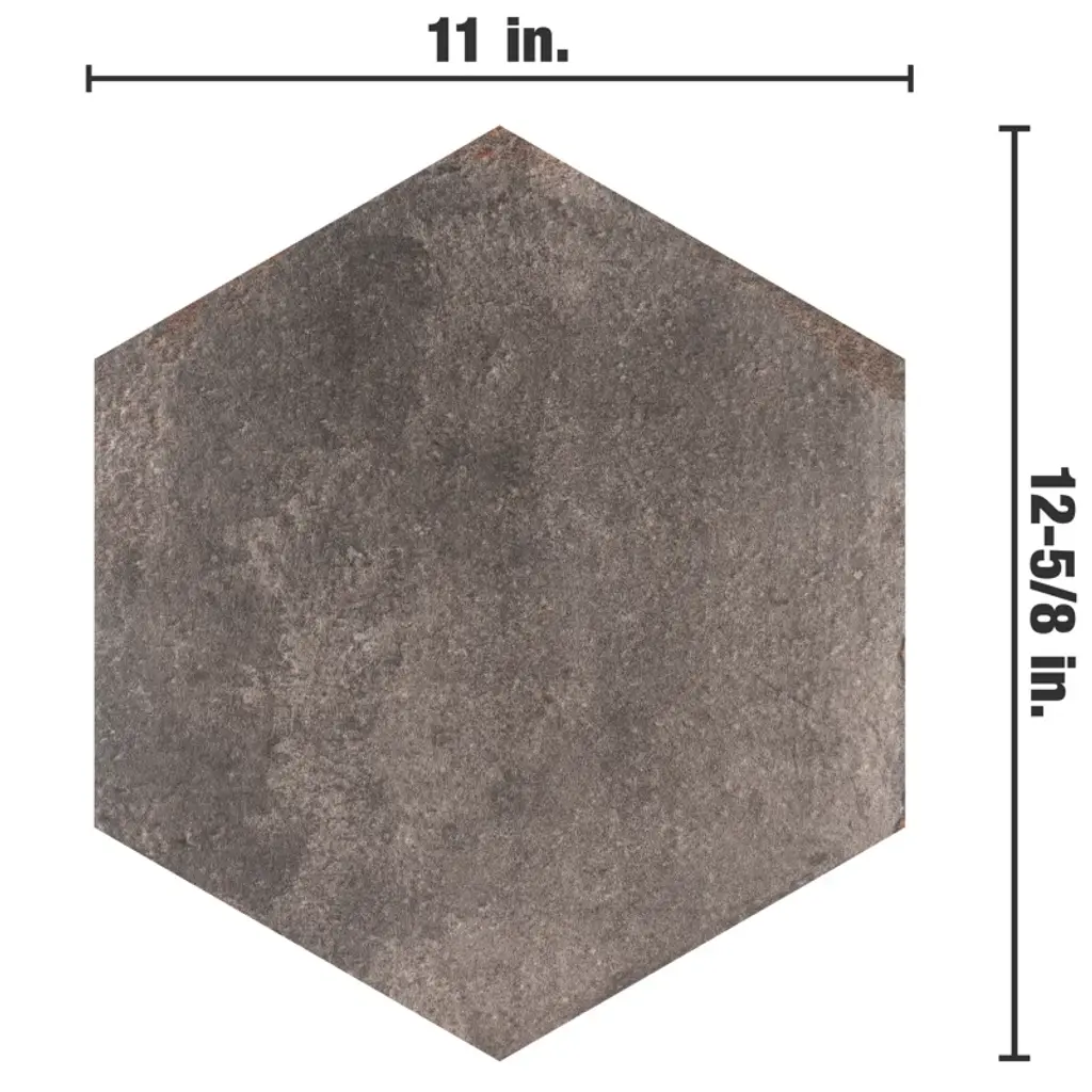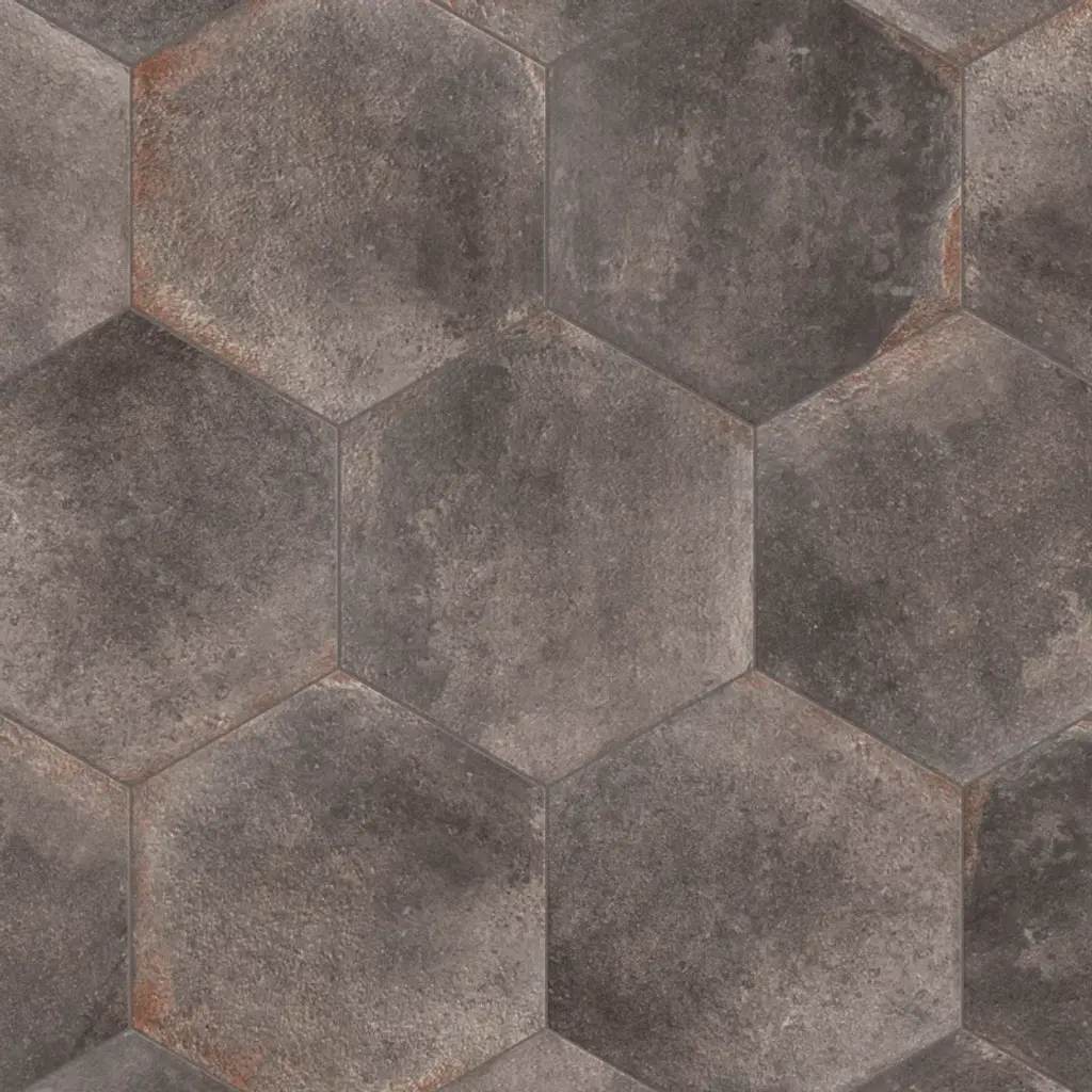 Our D'Anticatto Hex Notte 11 in. x 12-5/8 in. Porcelain Floor and Wall Tile radiates rustic charm. Mimicking a worn cement appearance, this porcelain hexagon tile is a subtle statement piece created by faded shades of charcoal grey and white. With rust colored accents and realistic imitations of scuffs and spots, this encaustic inspired tile evokes a loved, worn and century-old appearance. Available in twenty-six print variations that are randomly scattered throughout each case, the variation throughout each tile mimics an authentic aged appearance. Its impervious, frost-resistant and durable features make this tile and ideal choice for both indoor and outdoor residential installations including, backsplashes, kitchens, bathrooms, showers, entryways and patios. This tile is a perfect choice on its own or paired with other products in the D'Anticatto Collection. Tile is the better choice for your space. This tile is made from natural ingredients, making it a healthy choice as it is free from allergens, VOCs, formaldehyde and PVC.