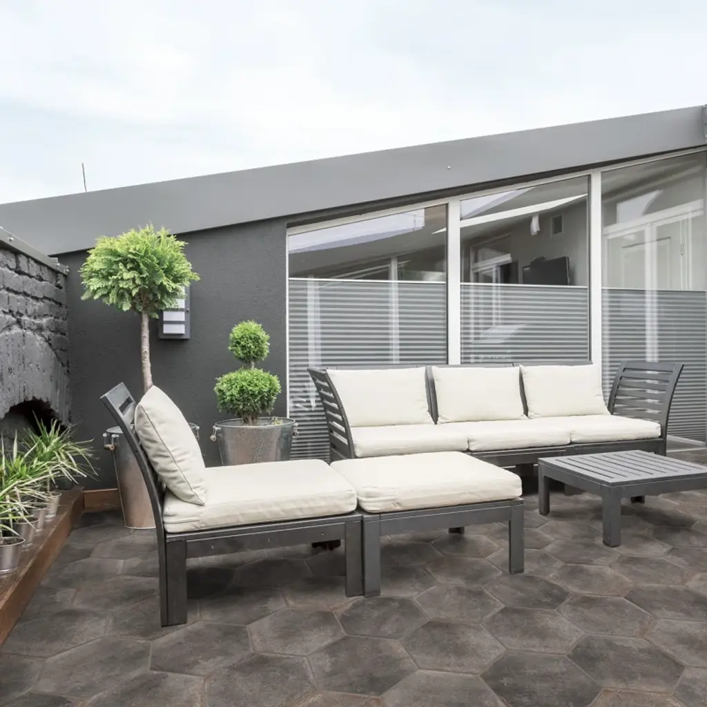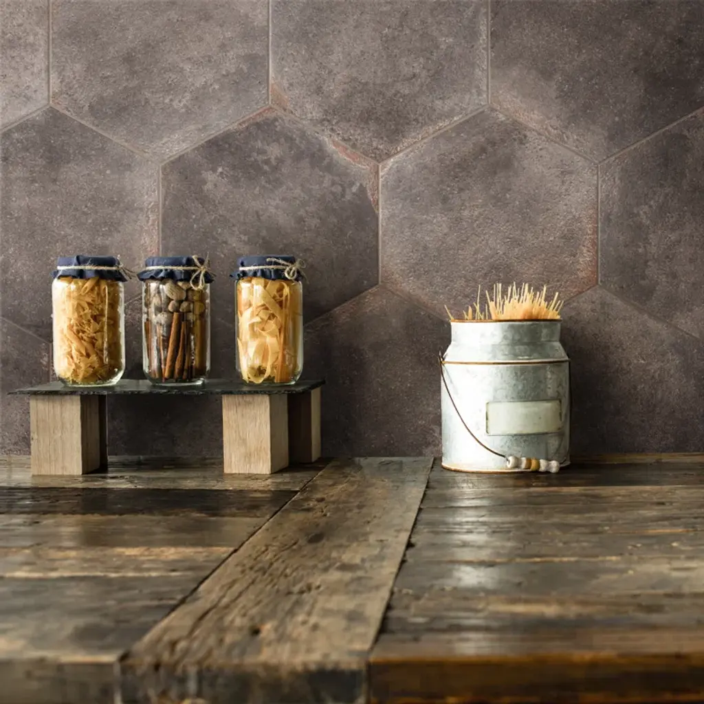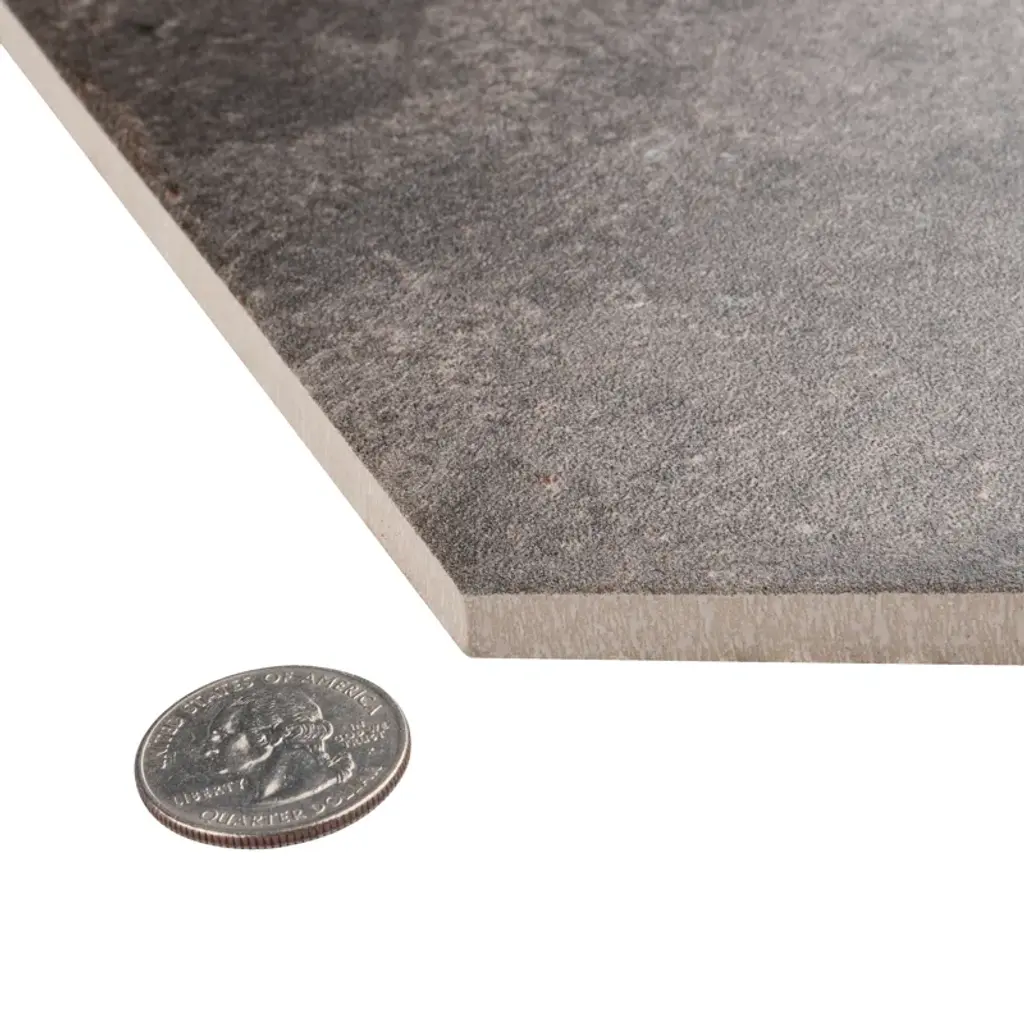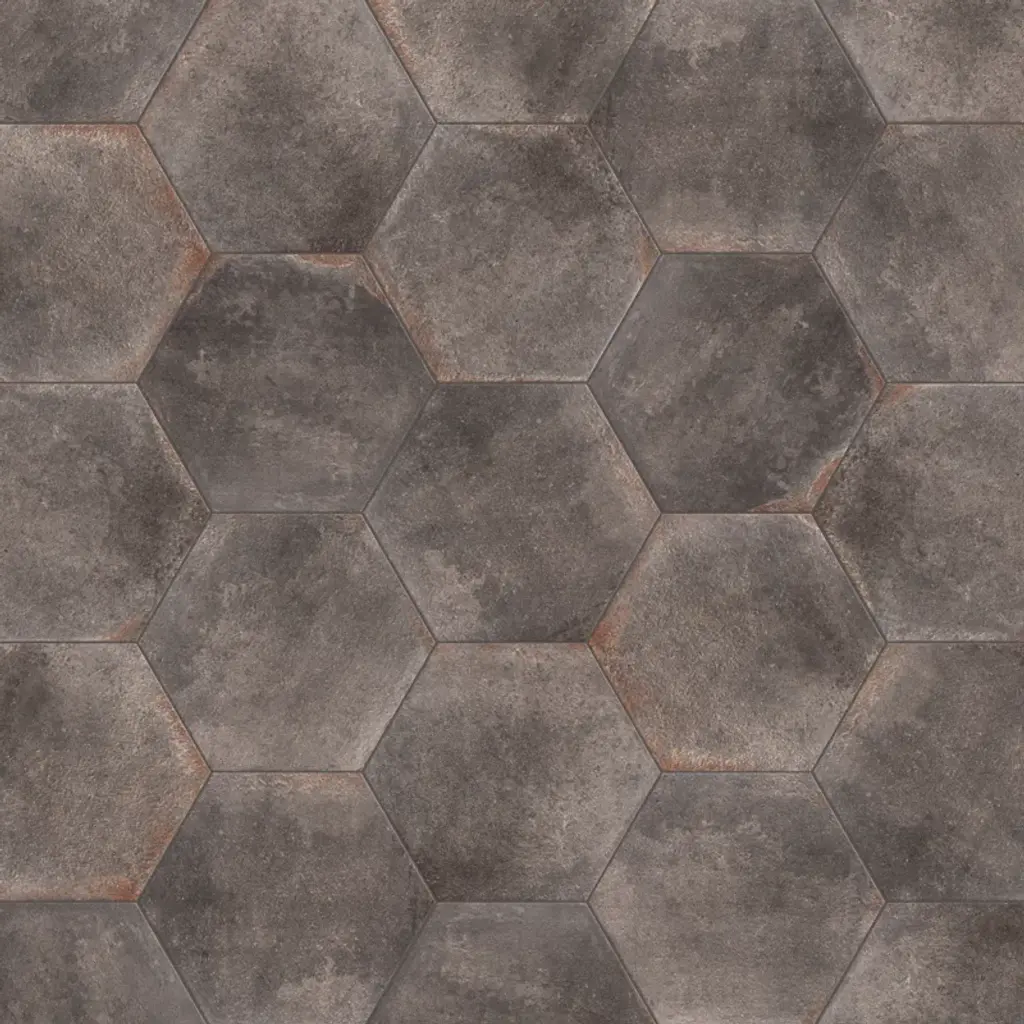 Our D'Anticatto Hex Notte 11 in. x 12-5/8 in. Porcelain Floor and Wall Tile radiates rustic charm. Mimicking a worn cement appearance, this porcelain hexagon tile is a subtle statement piece created by faded shades of charcoal grey and white. With rust colored accents and realistic imitations of scuffs and spots, this encaustic inspired tile evokes a loved, worn and century-old appearance. Available in twenty-six print variations that are randomly scattered throughout each case, the variation throughout each tile mimics an authentic aged appearance. Its impervious, frost-resistant and durable features make this tile and ideal choice for both indoor and outdoor residential installations including, backsplashes, kitchens, bathrooms, showers, entryways and patios. This tile is a perfect choice on its own or paired with other products in the D'Anticatto Collection. Tile is the better choice for your space. This tile is made from natural ingredients, making it a healthy choice as it is free from allergens, VOCs, formaldehyde and PVC.