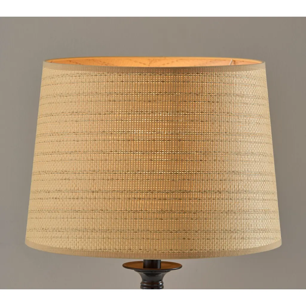 Darcy Table Lamp- Grey Tall Shade - Natural Woven Rattan