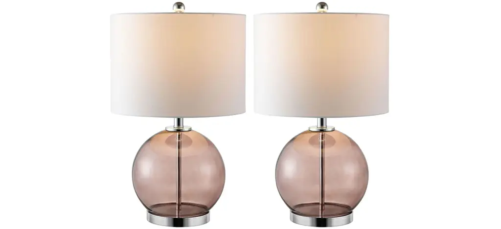 Polished and poetic, this contemporary Dariel Table Lamp Set is versatile and stylish. A new design classic, its sleek glass globe sits on a luxurious shimmering chrome base. Complete with a complementary matching finial and white shade, it's a designer favorite. Sold in sets of two.