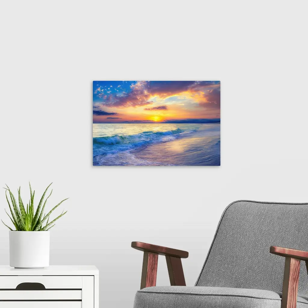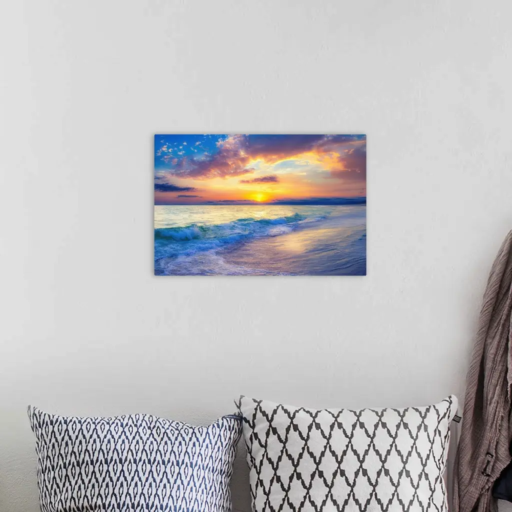 Dark Cloudy Blue Ocean Sunset wall art for home and office decor. Discover canvas art prints, photos, mural, big canvas art and framed wall art in GreatBigCanvas.com's varied collections.