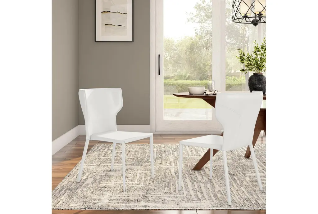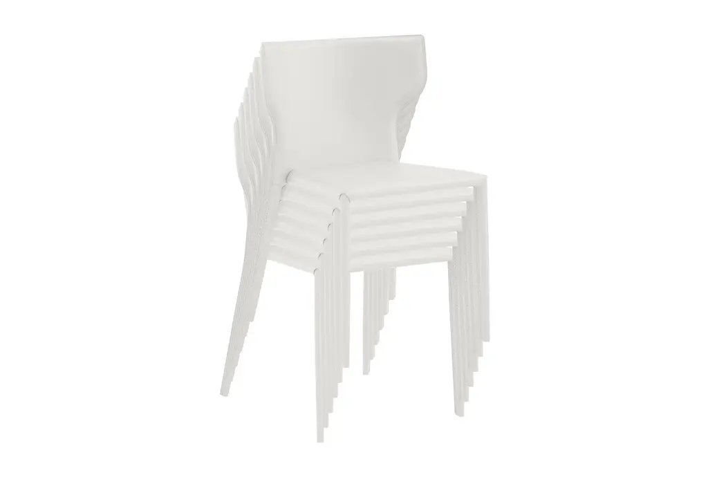 The Darla White Stacking Chair Set of 2 offers a sleek and modern seating solution for any space. Upholstered in luxurious leatherette, these chairs combine style and durability with their mid-century modern design.
