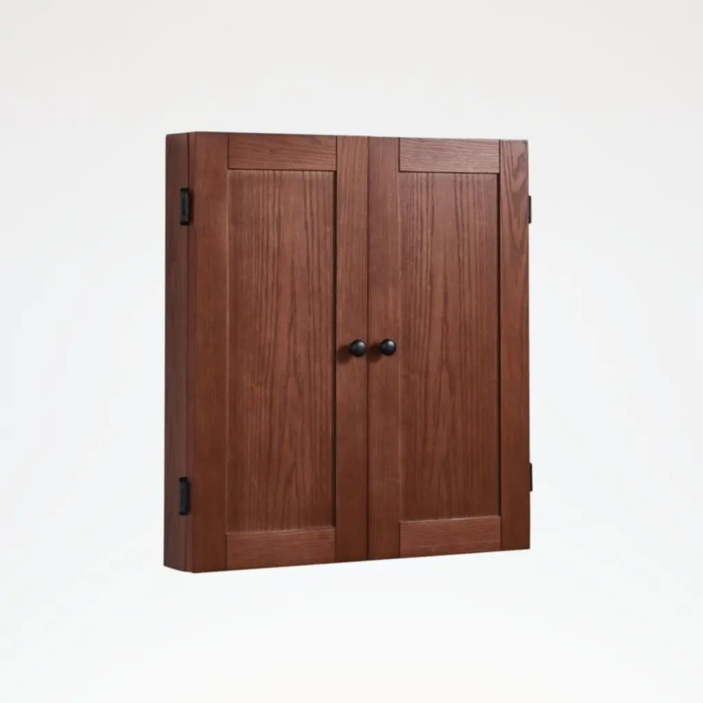 No need to go to the pub to get your dart game on. This handsome dartboard is ready to hang on your den or family room wall for rounds of Around the World, Crickets or other favorite game. The cabinet-style dartboard is made of solid pine and wood veneers with doors that open to a tournament-quality 18-inch board made of jute and sisal. Scoring boards are found on the back of each door, and each dartboard includes two sets of three weighted steel-dipped darts and a felt eraser.