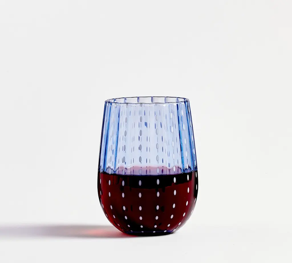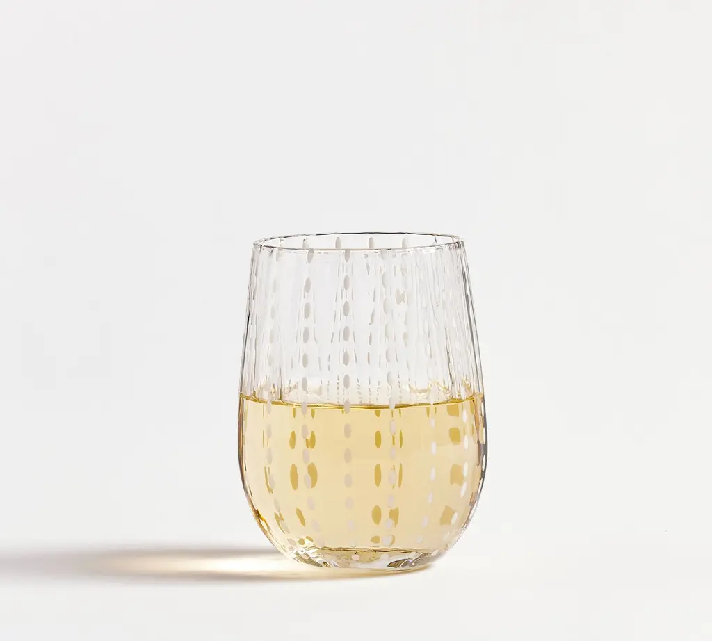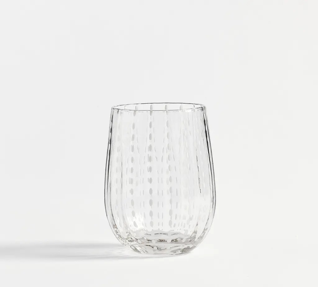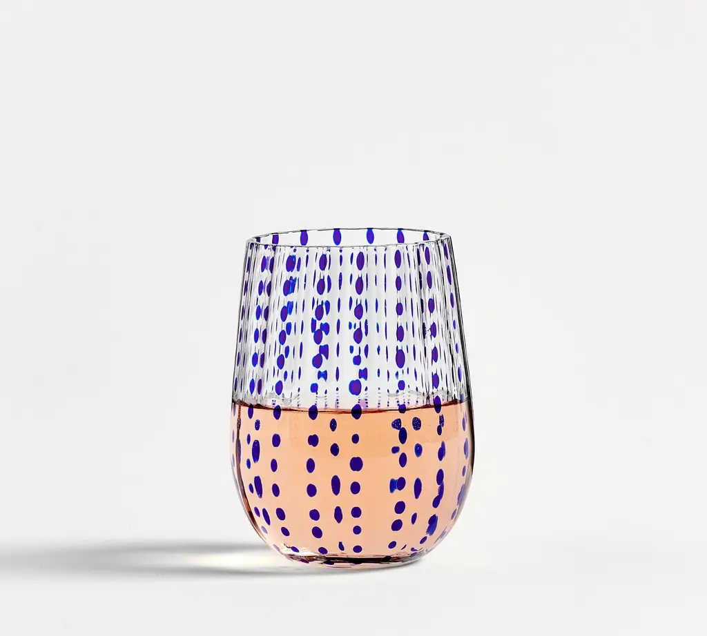 The festive lines that cascade down the sides of these tumblers are pulled while the glass is still molten. This creates a dynamic, artisanal looking pattern that feels perfectly imperfect. We think the big bonus is that they can also be cleaned safely in the dishwasher.