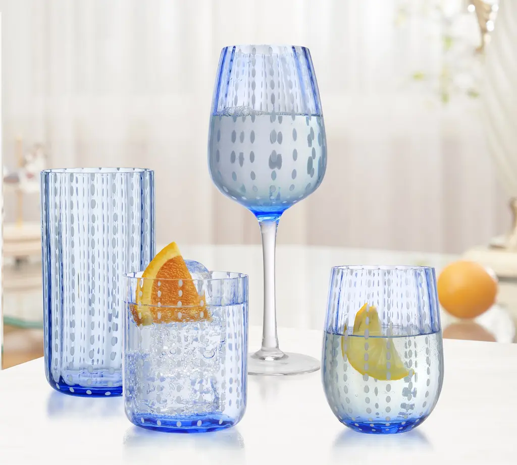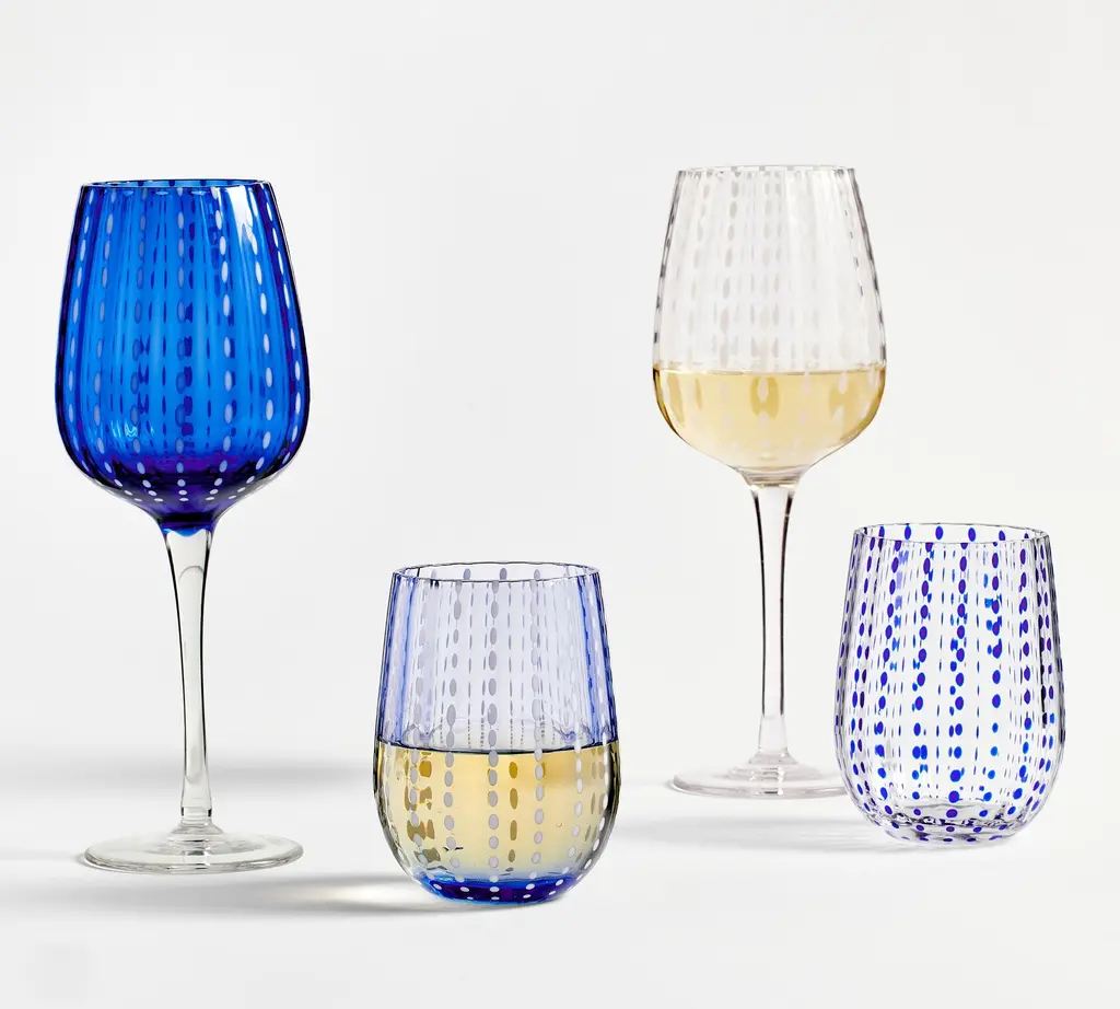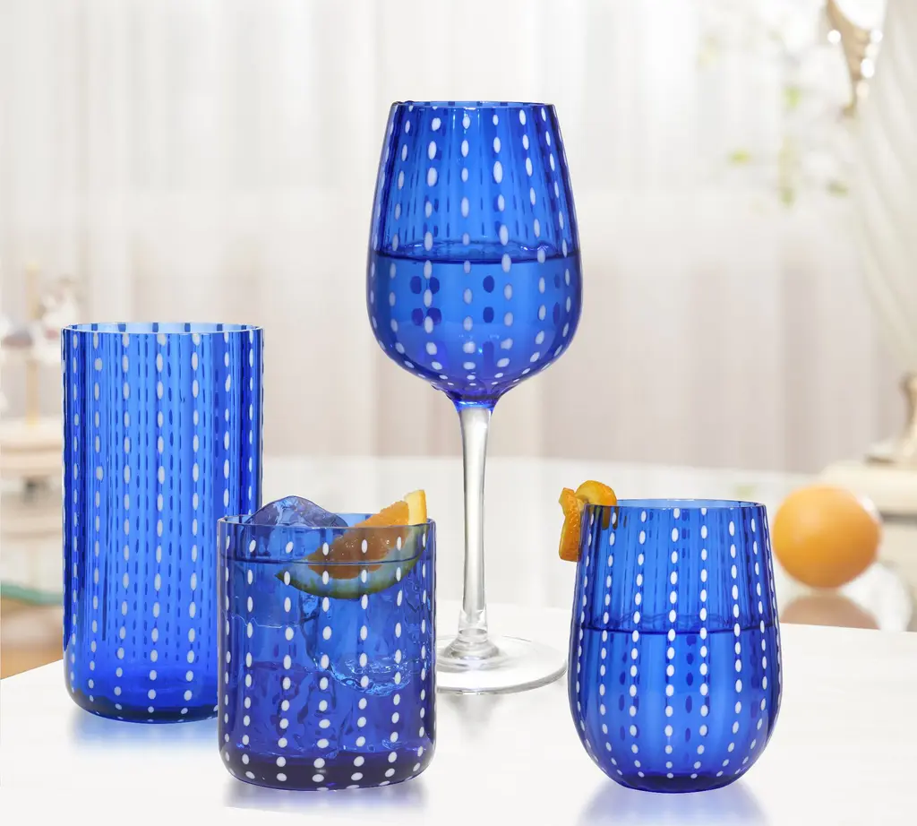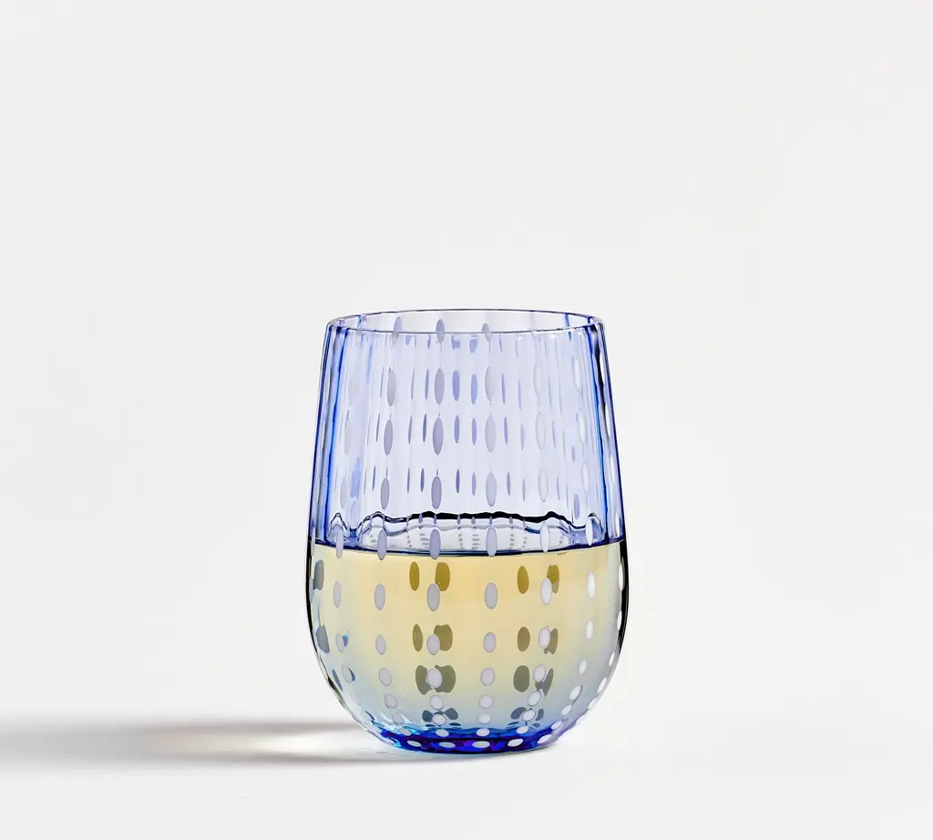 The festive lines that cascade down the sides of these tumblers are pulled while the glass is still molten. This creates a dynamic, artisanal looking pattern that feels perfectly imperfect. We think the big bonus is that they can also be cleaned safely in the dishwasher.