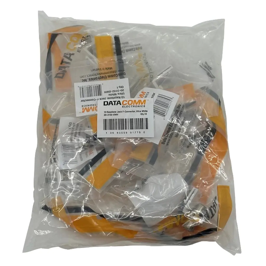 Datacomm Electronics Keystone Jack With 1.0-ghz F-connector, Ultra White, 10 Pack, 20-3102-uwh-10