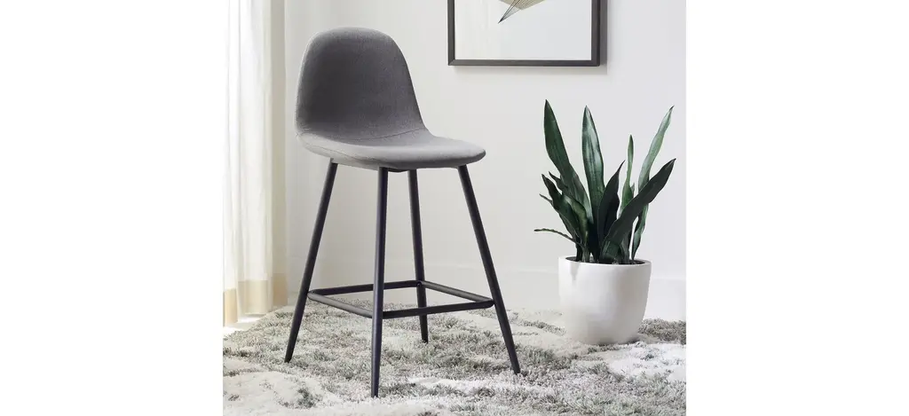 A contemporary take on Mid-Century design, this Davey Bar Stool takes drinking and dining to new heights of style. Davey's dark grey upholstery is ultra-soft to the touch and seamlessly accents any room's color scheme, while splayed black metal legs complete the look.
