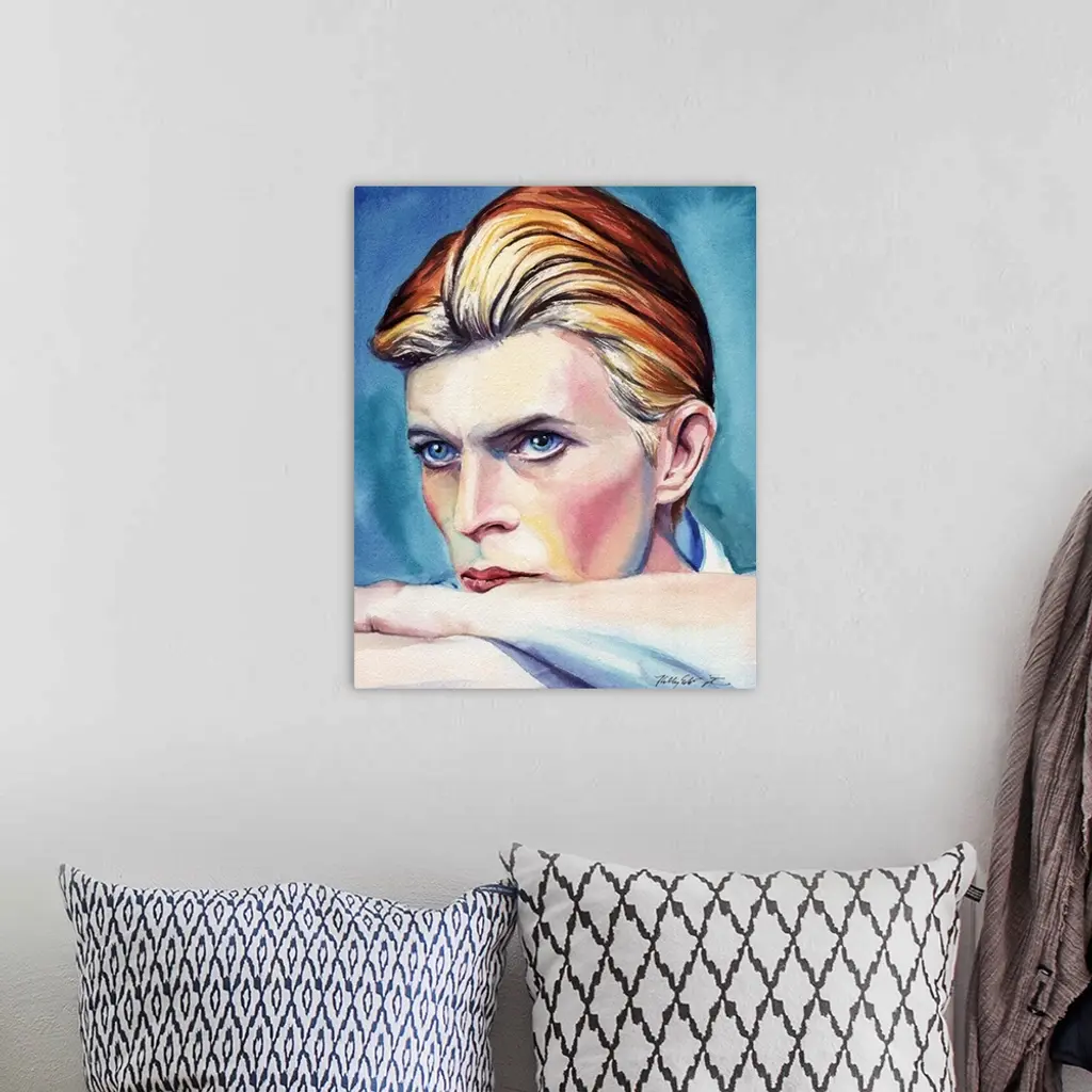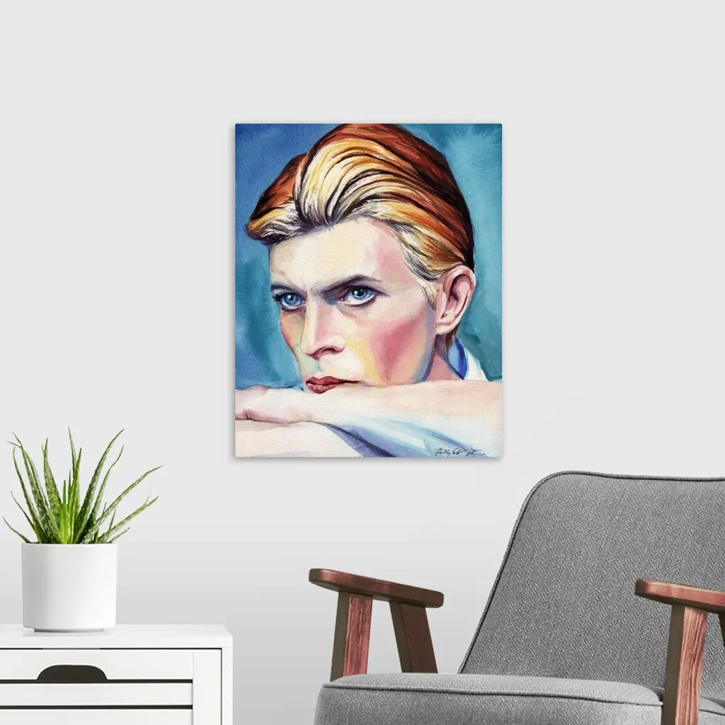 A watercolor portrait of David Bowie.