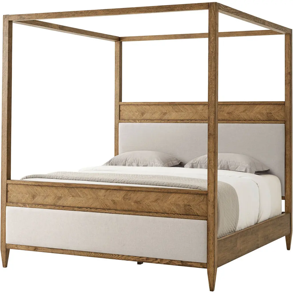 Davos Oak Fabric Panel Canopy Bed