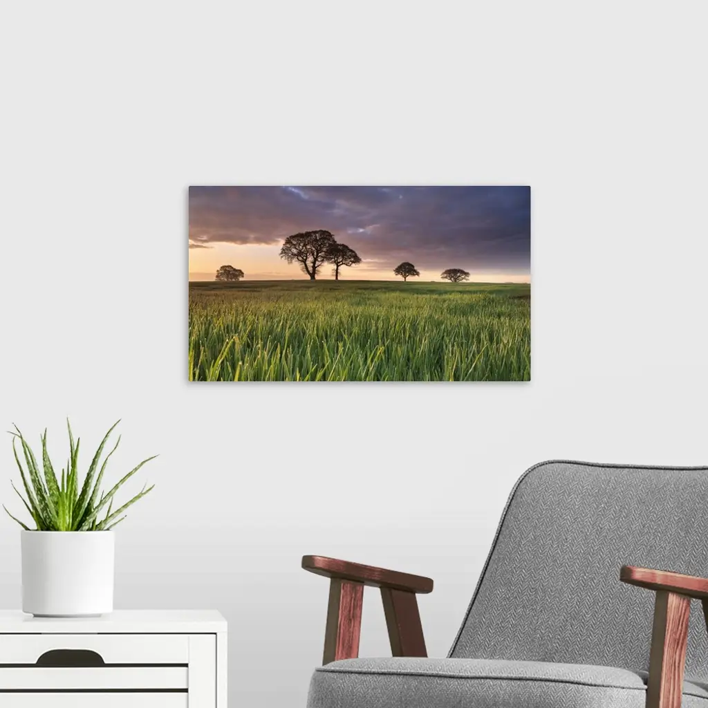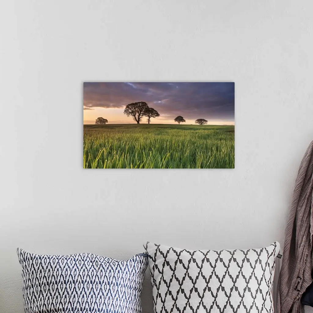 Daybreak Over Oak Trees In A Corn Field Near York, England