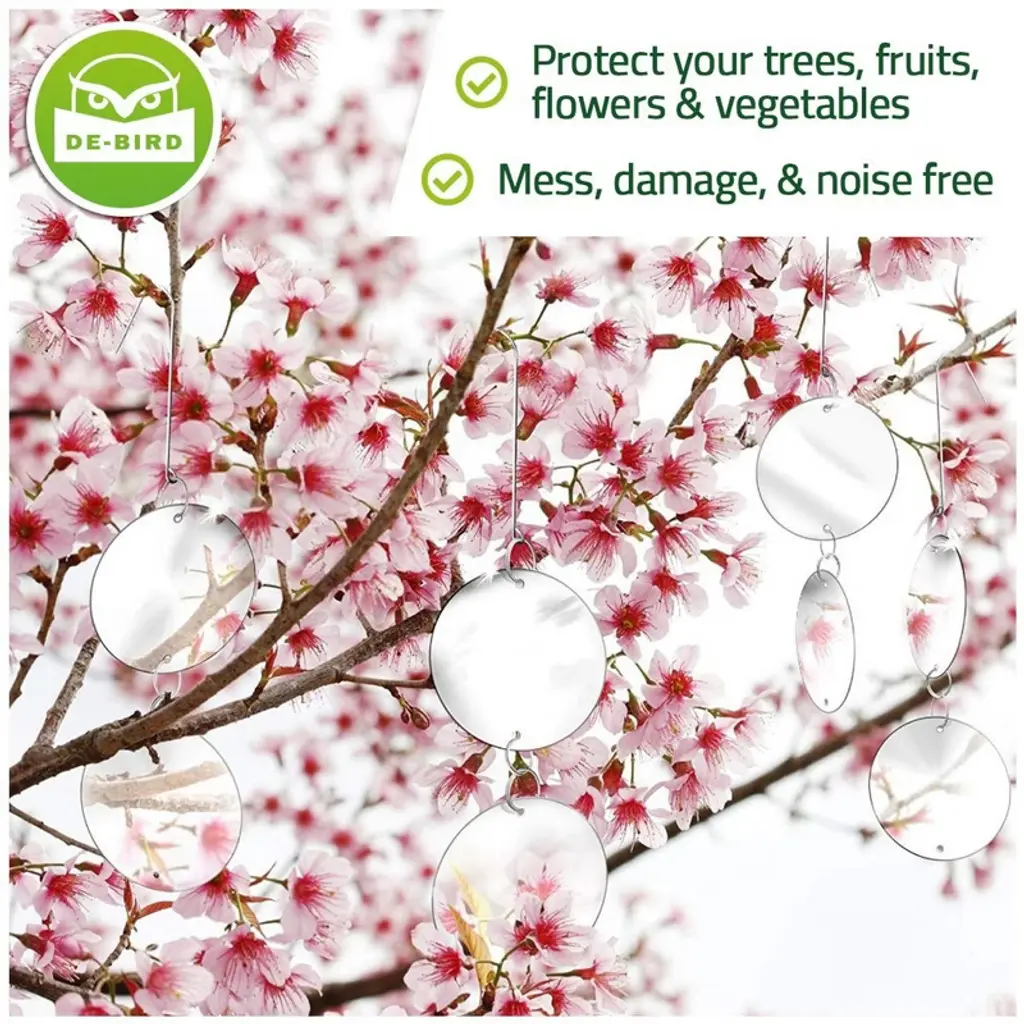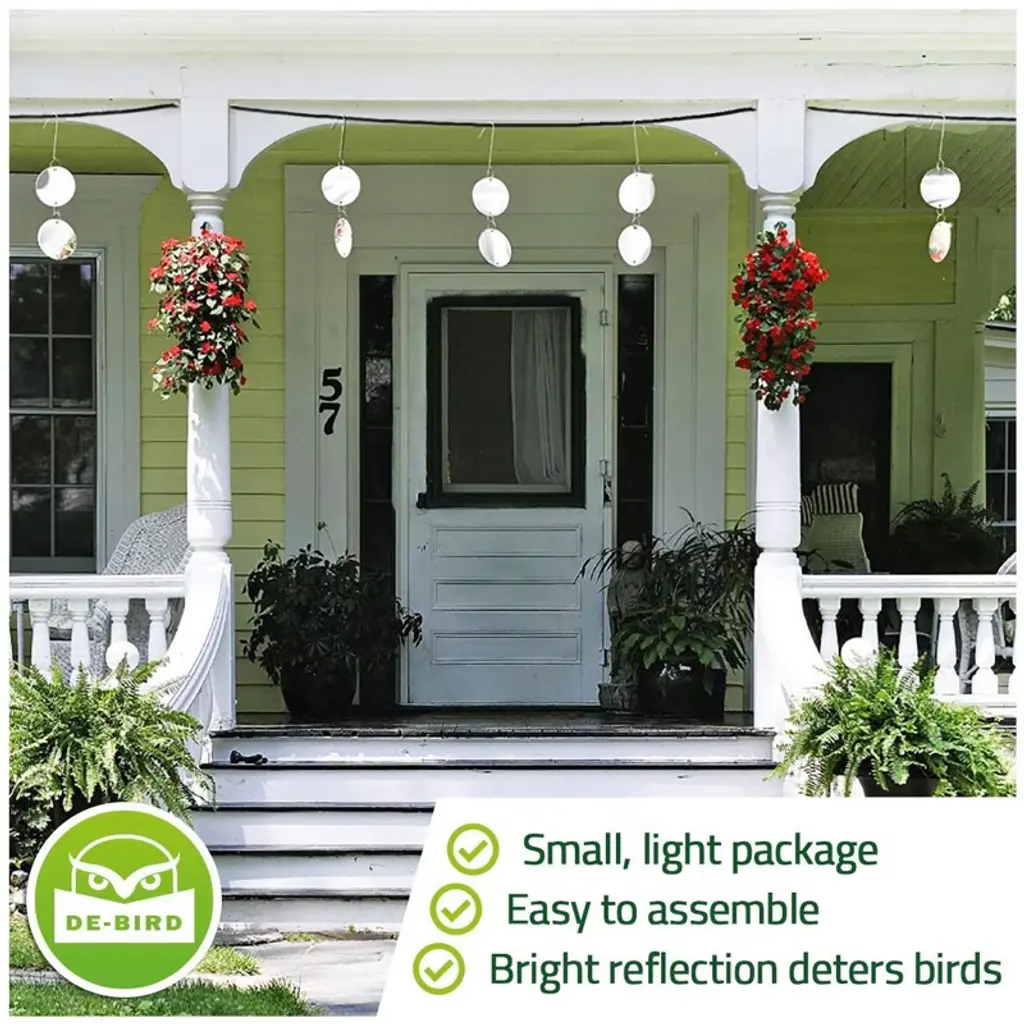 Protect your property from bird damage and mess today with our bird deterrent trees! STOPS WOODPECKERS - If you have woodpecker problems, it can feel like they’re making new holes as fast as you can repair the old ones. The bird repellent discs will quickly get rid of these and other nuisance birds once and for all. Scare birds away from porch and keep birds away from house with ease using the bird repellent for garden! REPELLENT DISCS: SO SIMPLE YOU’LL BE SHOCKED AT HOW WELL THEY WORK. Light reflection has been proven over time to be one of the most effective methods of bird control. The bird repellent reflectors for garden are quick and easy to assemble, and work like a diverter reflecting sunlight as they spin and swivel in the breeze to deter birds from landing. De-Bird Repellent Disks repel most common household birds including woodpeckers, hawks, pigeons, herons, grackles, crows, seagulls, geese and starlings. However, they’re less effective against sparrows, finches and other habitual birds. Each pack of our bird deterrent for wires scare bird discs, crow deterrent scare away crows, bird deterents, pigeon deterrents, animal deterrent for garden or bird repellant contains 16 disks, with 8 hooks and 24 rings to attach the disks together. Each disk has a diameter of 7.5 centimeters and is reflective on both sides. THE DE-BIRD DIFFERENCE - Our goal is to help gardeners and homeowners solve their bird control problems simply and safely by creating better bird proofing solutions and providing outstanding customer service. We use the most durable materials and construction methods available to ensure our bird repellent products are up to the job.