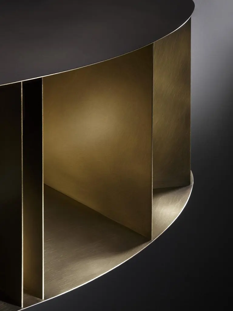 Available in wall-mounted versions, Existence consolle arose as an overlapping of small, varied boxes, like the experiences to one’s life: a consolle that - as for the totem-bookshelf - is designed to contain books and objects in modules that repeat, though the same form never appears twice.DIFFUSER MADE WITH A UNIQUE METAL PANEL HAND DEFORMEDSTAINLESS STEEL INOX DELABRE ORBITAL DELABRE’ BRASSCOPPERPrice refers to the brass version