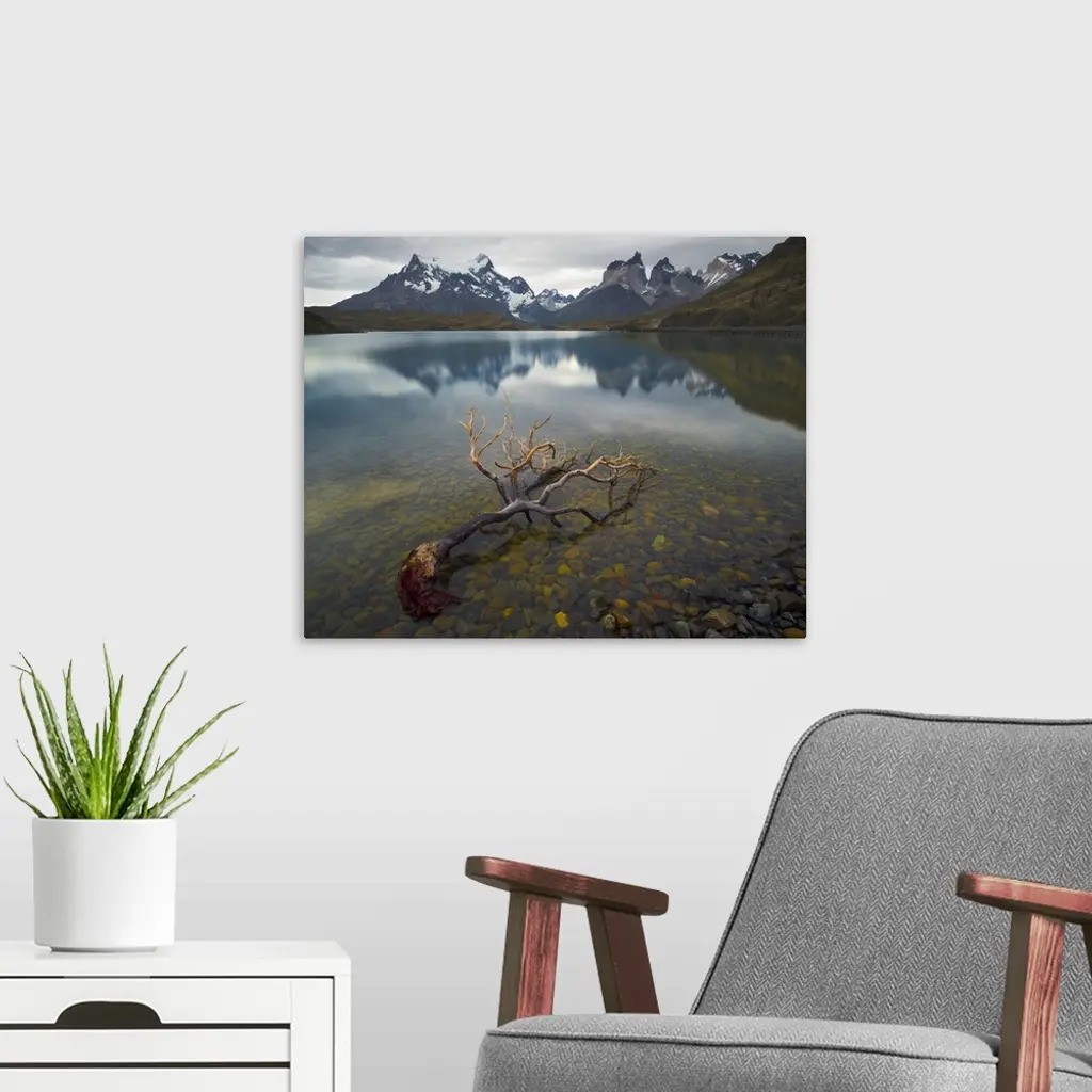 Dead Beech Tree In The Shallow Water, Torres Del Paine, Chile