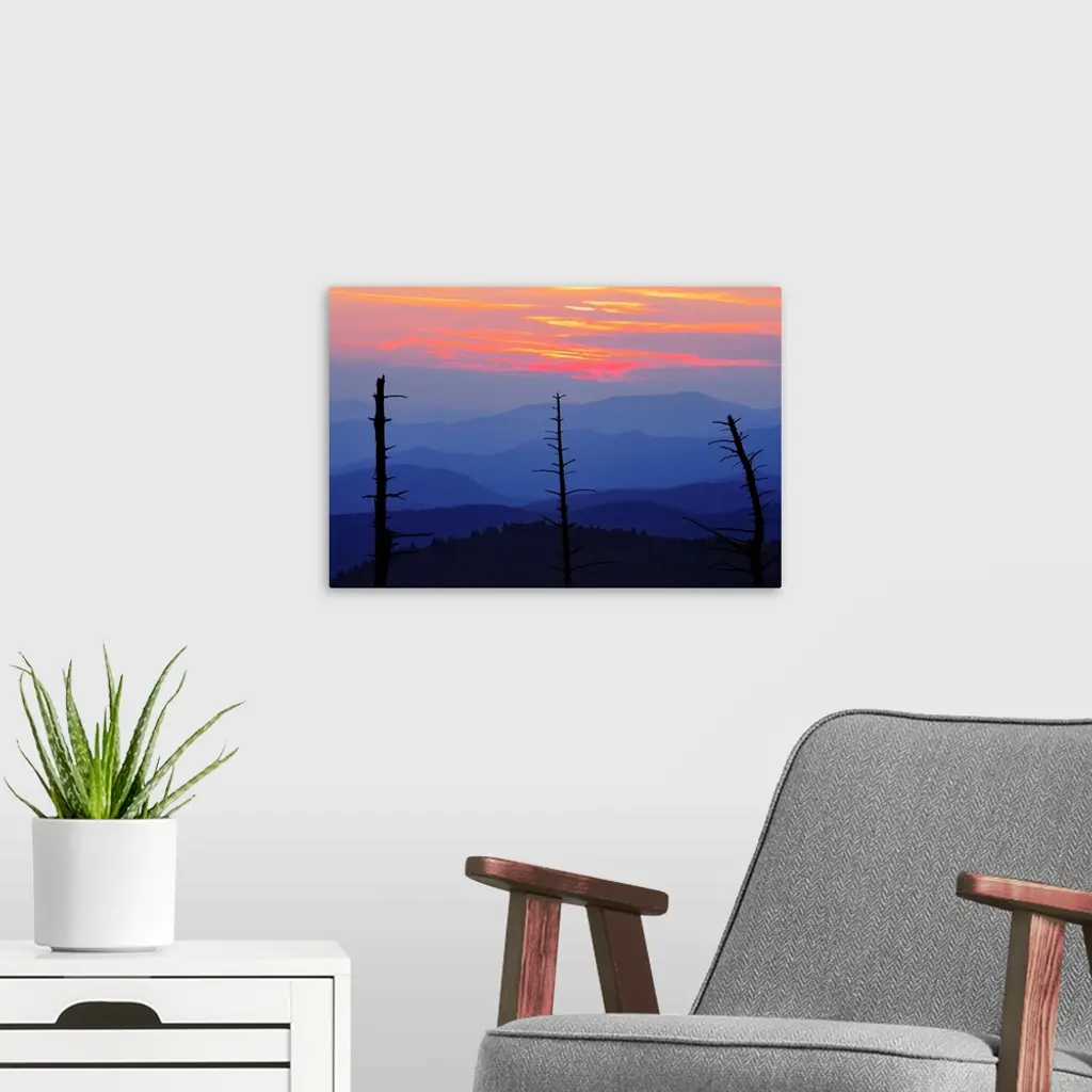 Dead Trees And Mountains, Smoky Mountains National Park, North Carolina, USA wall art for home and office decor. Discover canvas art prints, photos, mural, big canvas art and framed wall art in GreatBigCanvas.com's varied collections.