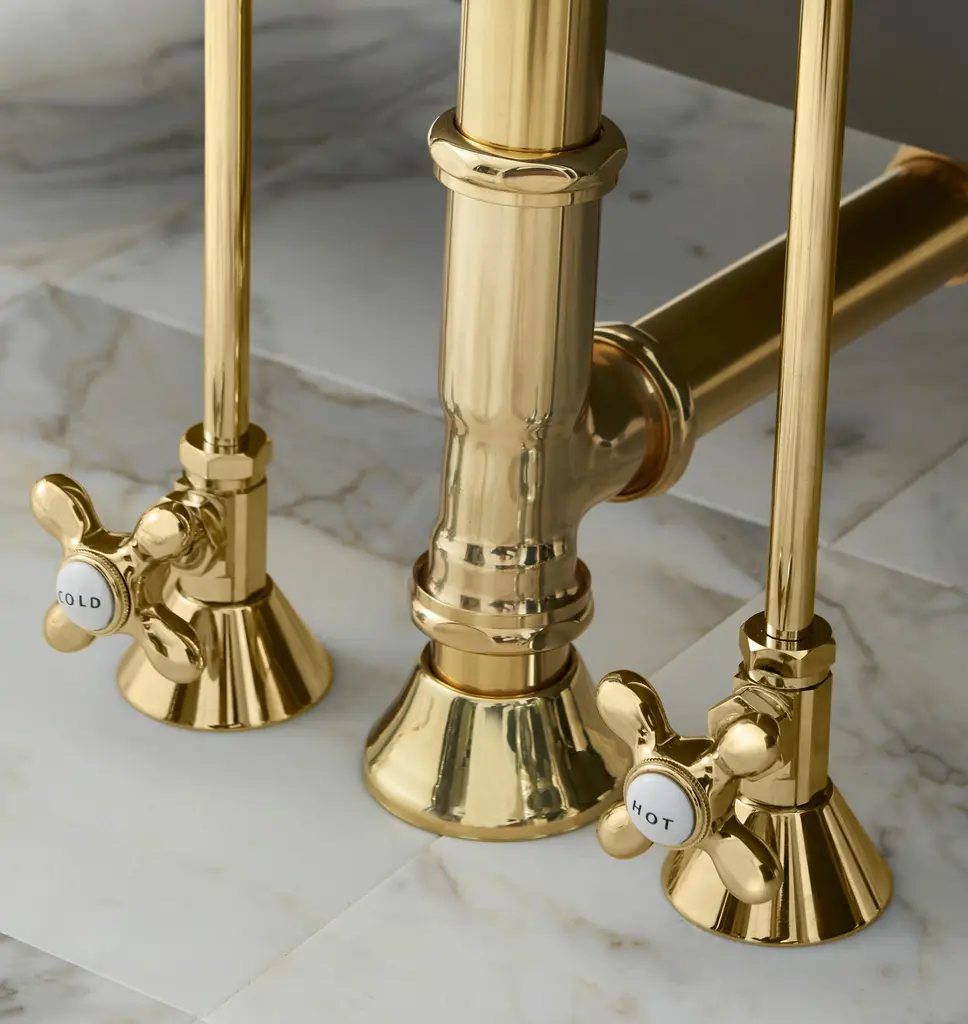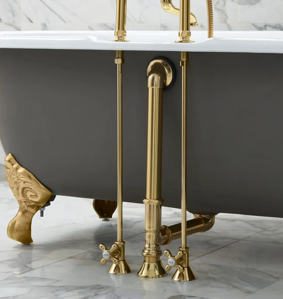 Our Deck-Mount Tub Supply Lines Kits bring water from your pipes to the tub filler. The shutoffs allow you to control the flow of water where the connection is made. This, plus the waste and overflow, is all you need to trim out your deck-mount clawfoot tub.